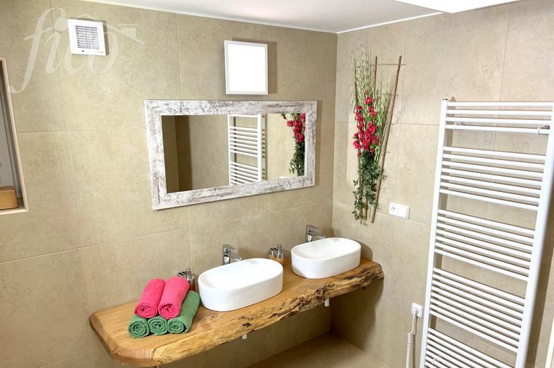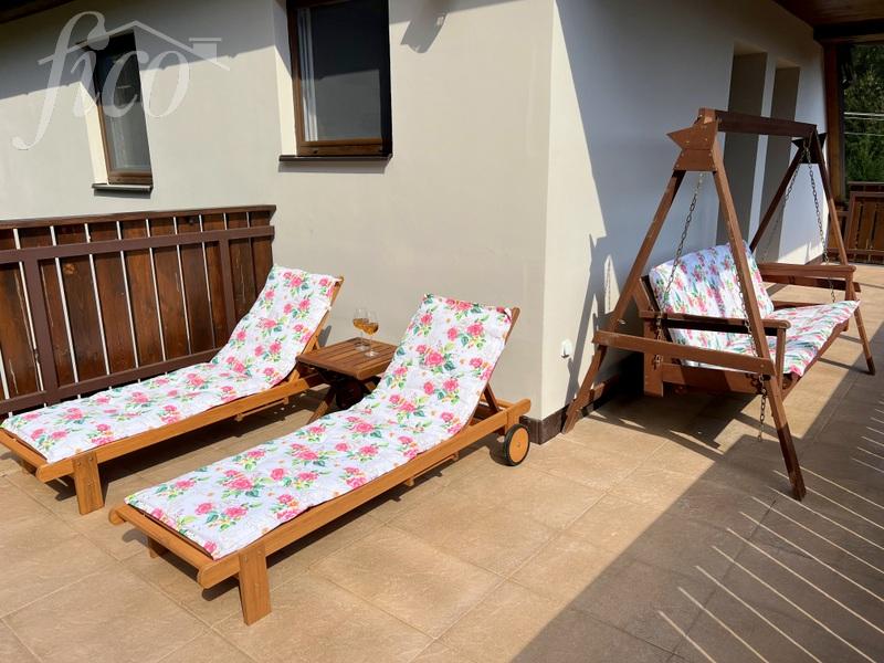 Přízemí: vstupní hala se schodištěm a úložnými prostory, plně vybavená prostorná kuchyň s novými spotřebiči: americké lednice, indukce, trouba s grilem, myčka, odsavač, mikrovlnná trouba, kávovar na zrnkovou kávu, rychlovarná konvice, toustovač, topinkovač, tyčový mixér a bohaté kuchyňské vybavení, jídelna s masivním dubovým stolem, lavicí a židlemi, obývací pokoj s koženou sedačkou, konferenčním stolkem a velkou Smart TV, oddělená místnost pro děti, s pohovkou, kterou lze využít také na spaní, skříň a dětský nábytek, prostorná koupelna s vanou, sprchovým koutem, dvěma umyvadly, příprava pro pračku a sušičku, 2x samostatné WC s umyvadlem, technická místnost s ohřevem vody přes solární systém.