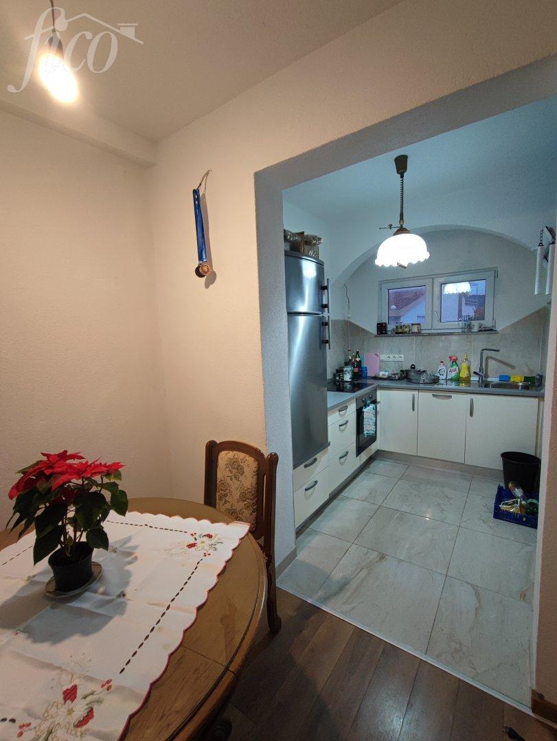 Dům má dvě patra - v přízemí je byt 120 m2 - může se využívat i jako 2 samostatné apartmány, každý má vlastní vchod, jeden apartmán má 2 samostatné pokoje, kuchyň s balkonem společně s obývacím pokojem. Vlastní sociální zařízení - WC dohromady se sprchovým koutem. Druhý apartmán má jednu místnost - obývací pokoj s kuchyní, WC se sprchovým koutem, ze které je vstup na terasu s pohledem na zahradu.