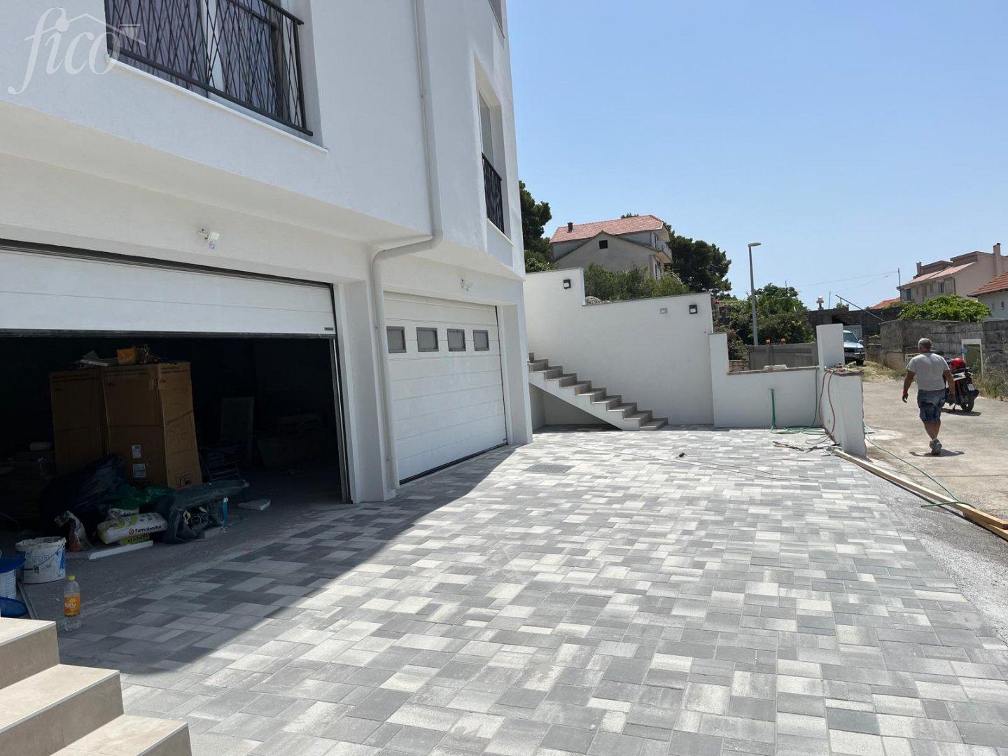 Novostavba apartmánového domu v atraktivní lokalitě ve 2. řadě k moři s panoramatickým výhledem na moře s celkovou užitnou plochou 56,47 m2. Byt má moderní design, funkční dispozici a nachází se v 1. patře bytového domu s jihozápadní orientací. Skládá se z chodby, koupelny, obývacího pokoje s kuchyní a jídelnou, předsíně a dvou ložnic. Je postaven z kvalitních materiálů, vybaven klimatizacemi Panasonic (multisplit systém) v každé místnosti, elektrickým podlahovým vytápěním v celém bytě, plastovými okny s hliníkovými žaluziemi se sítěmi proti hmyzu, bezpečnostními/protipožárními dveřmi. K bytu náleží dvůr 15,05 m2, jedno garážové stání 14,5 m2 (elektrická garážová vrata Hormann) a komora. Byt je 70 m od pláže a 1200 m od centra města, rok výstavby 2023.