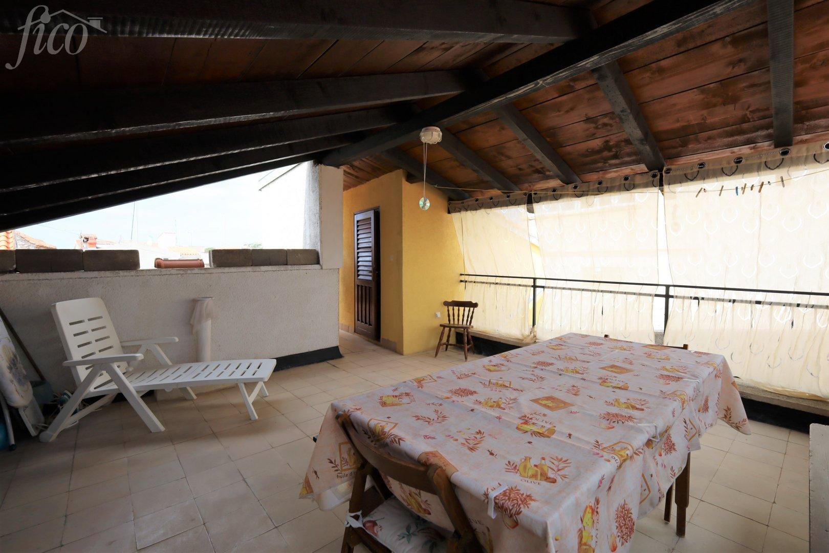 Renovovaný kamenný dům o třech podlažích ve staré části Tribunje, ve 2. řadě k moři. Dům má přízemí + 1. patro + 2. patro s celkovou užitnou plochou 141,23 m2 a přístup ze dvou ulic. Sestává z terasy, obývacího pokoje, chodby, kuchyně a jídelny, koupelny, komory a schodiště v přízemí, chodby, koupelny, dvou ložnic, terasy v 1. patře. Ve 2. patře jsou dvě terasy, jedna na jižní straně je kompletně zastřešená a druhá na západní straně je odkrytá. Dům je zařízen a ihned k nastěhování. Nachází na pěší zóně, autem je dojezd 20 m od domu, parkování je možné na nedalekém veřejném parkovišti.