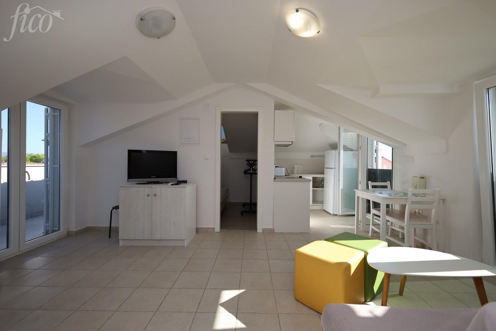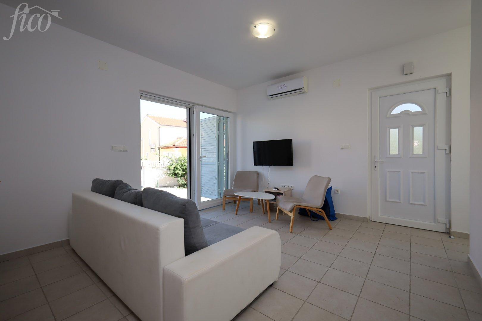 Dvojdům v atraktivní lokalitě Srima s užitnou plochou 167 m2 s upraveným dvorem/parkovištěm 16 m2. Nemovitost je vnitřně rozdělena na 3 samostatné byty. Mezonetový byt se nachází v přízemí a 1. patře a dva byty jsou v podkroví. V přízemí a v 1. patře je dvoupatrový byt, kde v přízemí je koupelna, kuchyň a obývací pokoj a schodiště vedoucí do 1. patra, kde jsou tři ložnice, terasa a koupelna. Vnitřní schodiště vede do podkroví, kde jsou umístěny dva samostatné byty 1+1. Všechny apartmány jsou klimatizované a plně zařízené, nábytek je zahrnut v ceně. K nemovitosti náleží upravený dvůr/terasa 152 m2, na kterém je možné zaparkovat 4 auta. Pouze 300 m od moře a dobře udržované pláže a 270 m od centra města. Rok výstavby 2017.