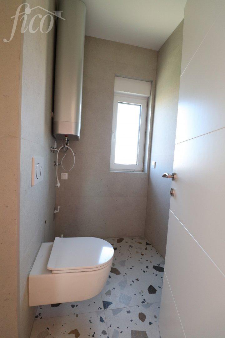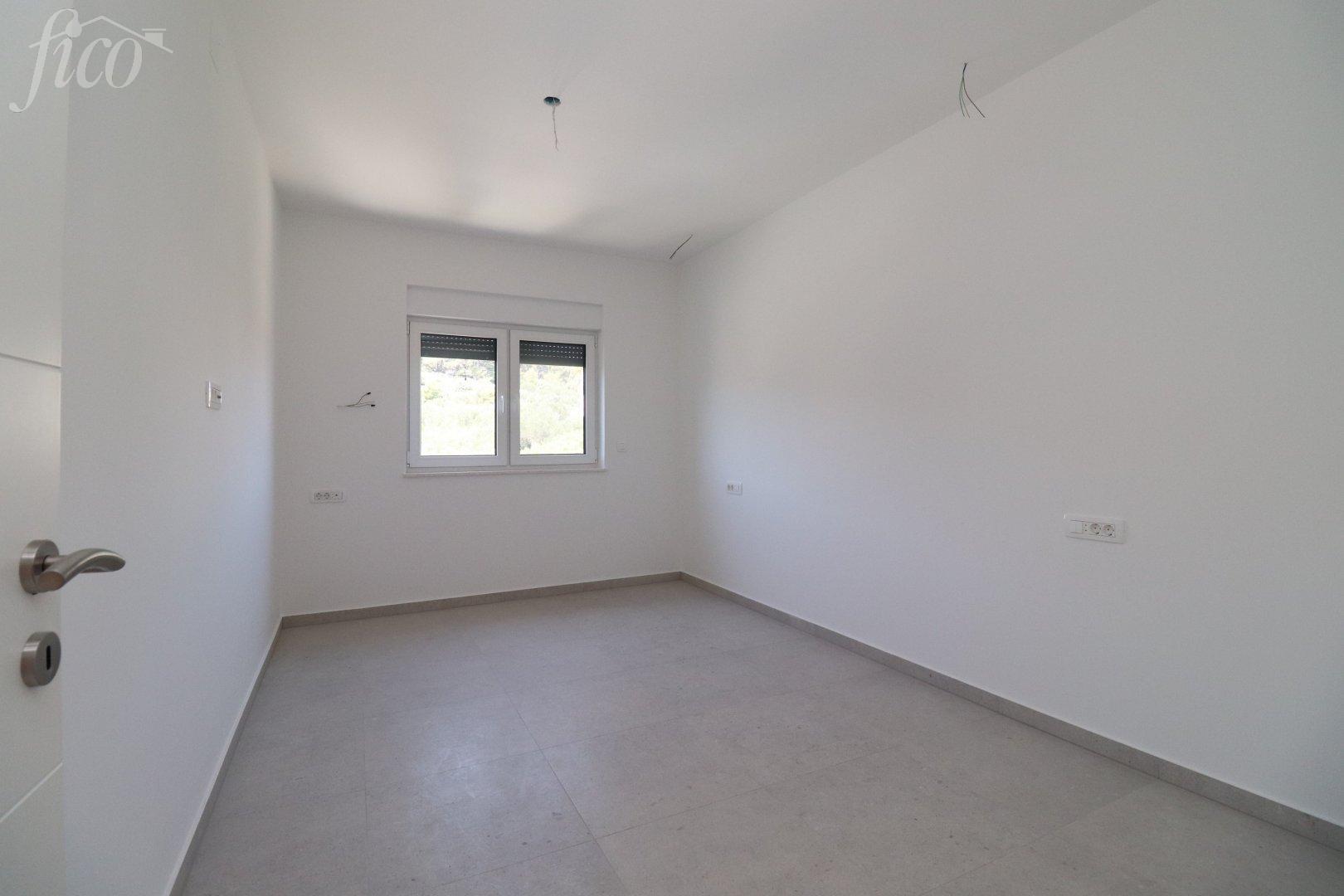 Betina – První řada u pláže! Moderní dvoupokojový apartmán ve 2. patře novostavby, na prvotřídní adrese v Betine – apartmán s otevřeným výhledem na moře. Apartmán je orientován na východ s krásným a otevřeným výhledem na moře. Celková užitná plocha je 84,86 m² a skládá se z: vstupní haly, dvou ložnic, koupelny a toalety pro hosty, moderně vybavené kuchyně s jídelnou a obývacím pokojem, kryté terasy o rozloze 13,50 m² s výhledem na moře, garážového stání o rozloze 20 m² a úložného prostoru o rozloze 5,34 m². Vlastníci bytů v budově mají k dispozici prostorný společný dvůr o rozloze přibližně 200 m² s krytou terasou, grilem / venkovní kuchyní a venkovní sprchou. Vysoký standard vybavení: PVC okna s elektrickými roletami a moskytiérami, protipožární vstupní dveře, elektrické podlahové vytápění v koupelně, chodbě, kuchyni a obývacím pokoji, klimatizace a TV připojení v každém pokoji a obývacím pokoji, moderní koupelnové vybavení a sanitární keramika. Byt je kompletně dokončený a připravený k nastěhování, ideální pro dovolenou, ale i pro celoroční bydlení či turistický pronájem.