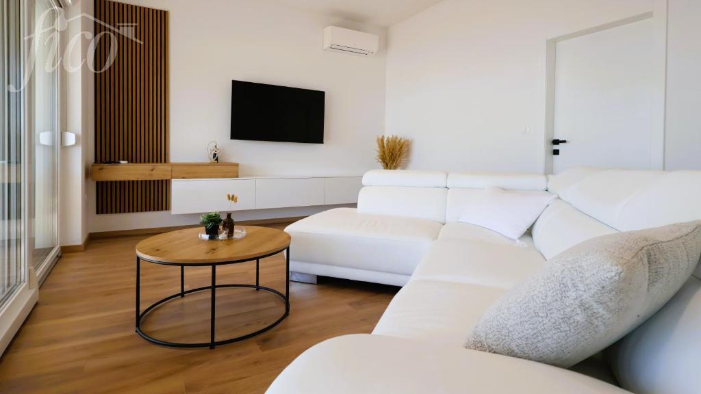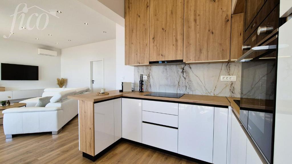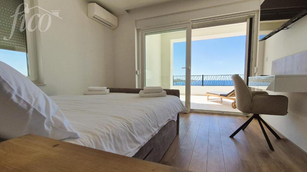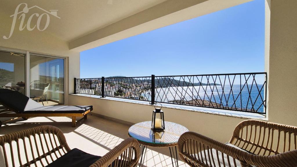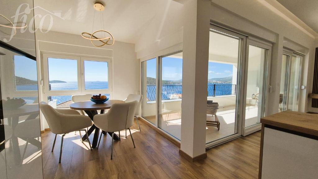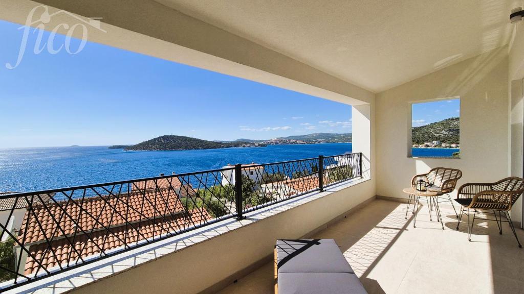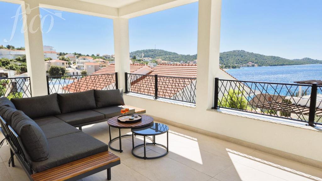 Díky vyvýšenému terénu a velkým proskleným plochám je výhled na moře ze všech apartmánů v budově a díky západní orientaci si můžete užívat úžasných západů slunce. Dům byl postaven v roce 2025. Zahrada je ve středomořském stylu s aromatickými bylinkami, olivovníky a vyhřívaným bazénem. Užitná plocha 309 m2, pozemek 420 m2, 4 ložnice, 4 koupelny, 4 parkovací místa. Objekt má veškerá povolení k pronájmu v turistickém ruchu, takže může být zajímavý i jako investice s očekávanou návratností investice 15 až 18 let. Vzdálenost od pláže je 90 metrů, restaurace 300 metrů. Vzdálenost od letiště je přibližně 25 km.