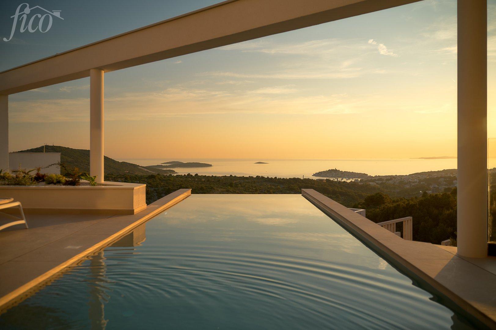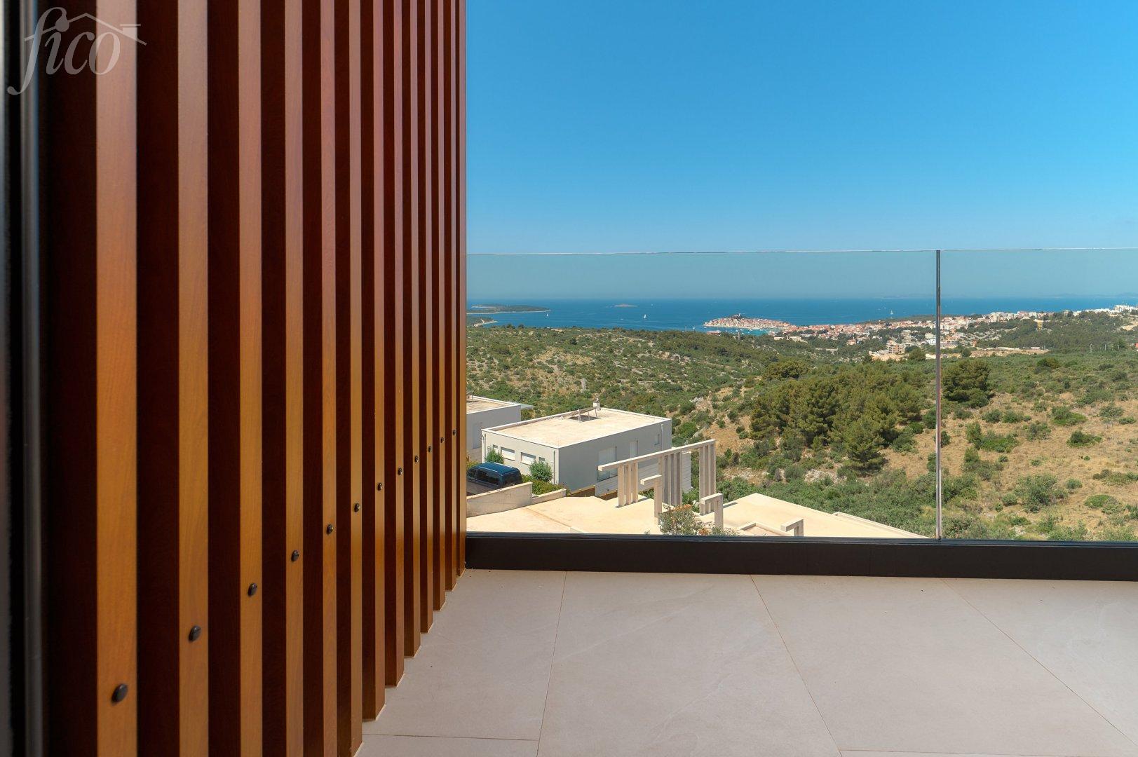 Tato impozantní luxusní vila se nachází v jednom z nejkrásnějších měst Dalmácie a nabízí úchvatný panoramatický výhled na moře a půvabné staré město Primošten. Je ztělesněním moderní elegance, sofistikovanosti a vyniká svým prostorným a světlým interiérem s mimořádným důrazem na estetiku a detail. Vila se nachází na pečlivě upraveném pozemku o rozloze více než 500 m² s udržovanou středomořskou vegetací, jacuzzi, krbem a prostorným parkovištěm. Dispozice vily zahrnuje tři úrovně pro maximální pohodlí a luxus. V suterénu o ploše 268 m2 se nachází apartmán, garáž pro dvě auta, koupelna, sklad a technická místnost. V přízemí o ploše 283 m2 vás přivítá prostorná vstupní hala s šatnou, otevřený obývací pokoj s jídelnou kuchyní a výstupem na terasu s úžasným panoramatickým výhledem na moře, nekonečný bazén, WC, spíž a 3 terasy. Nádherné designové schodiště vás dovede do dalšího patra, kde vás čekají 4 ložnice, každá s vlastní terasou a koupelnou. Moderní vybavení prémiovým luxusím španělským nábytkem zvyšuje komfort a funkčnost vily, včetně elektrické klimatizace v každém pokoji a podlahového vytápění pro zajištění celoročního komfortu. Veřejný vodovod, kanalizace - bio septik.