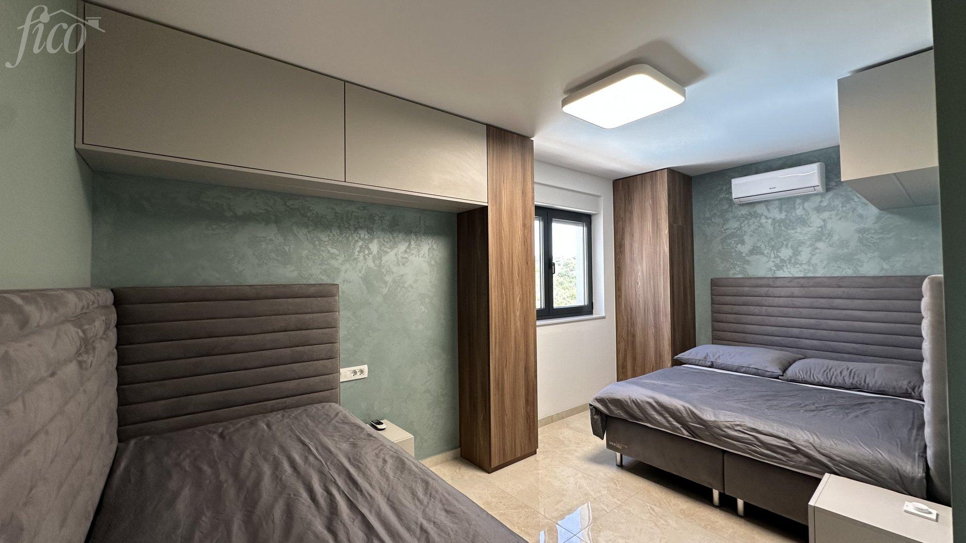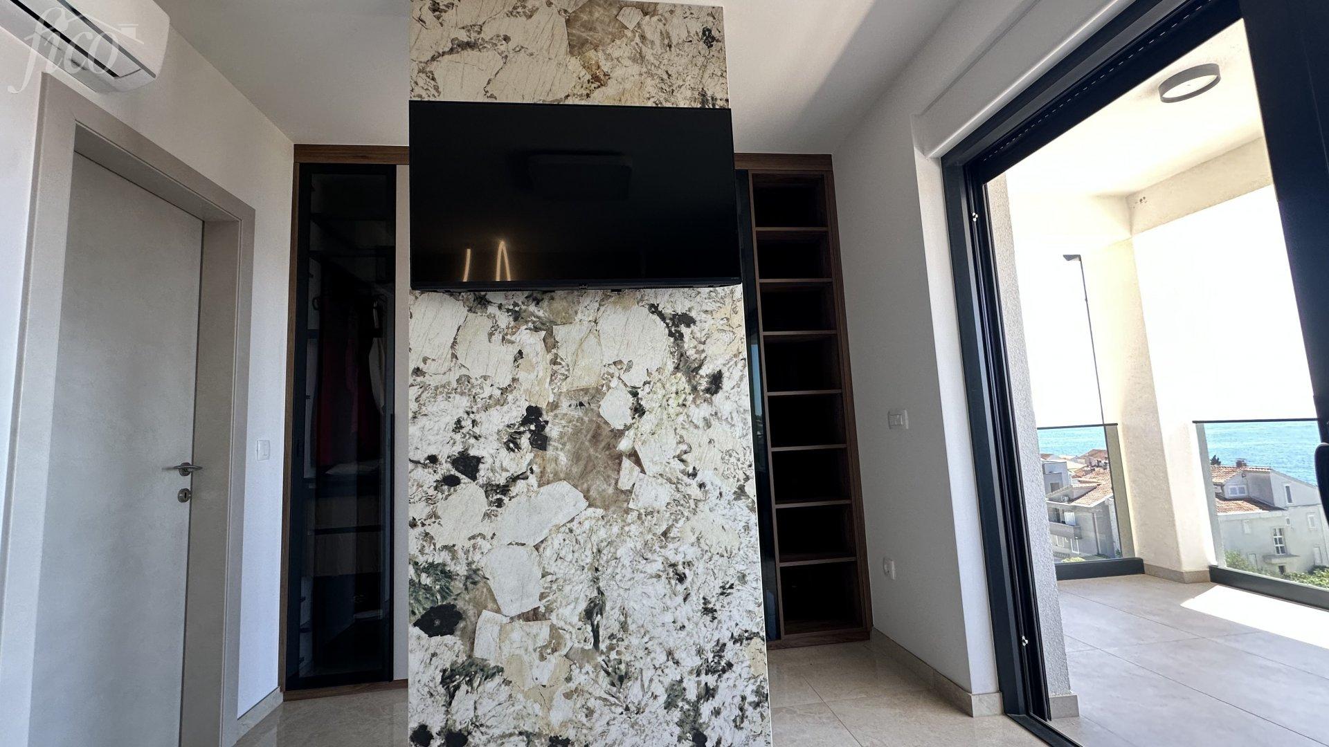 Nabízíme k prodeji luxusní byt v prémiové lokalitě, který nabízí nejen výjimečný komfort a design, ale také krásný, nezastavěný výhled na Jaderské moře. Byt se nachází ve 2. patře novostavby viladomu s celkem 4 byty. Má jihozápadní orientaci, obývací pokoj s jídelnou, kuchyní, chodbu, dvě ložnice, dvě kryté terasy, každá o výměře 14 m2 s úžasným výhledem na moře, 2 koupelny, 3 toalety, soukromou část zahrady o užitné ploše 44,50 m2 a 2 parkovací místa. Byt je vybaven luxusním nábytkem nejvyšší kvality, navrženo kompletně designerem od výběru obkladů, dlažby, sanitárií, dveří, osvětlení až po veškerý nábytek vyrobený na míru. V kuchyni a na ostrůvku je kámen Patagonie s podsvícením, krásný prvek bytu, který vynikne obzvlášť večer stejně jako spousta led osvětlení na dálkové ovládání s možností tlumení intenzity a dotváření atmosféry dle přání a nálady. Velkoformátová okna s roletami a sítěmi proti hmyzu, klimatizace v každém pokoji, podlahové topení v koupelně. Byt se nachází v jedné z nejžádanějších částí Dalmácie, jen pár metrů od moře, v klidné části Rogoznice, obklopený středomořskou zelení a okouzlujícími intimními plážemi. Na dosah ruky je také přístav Frapa, místní restaurace, kavárny a obchody. Ideální pro ty, kteří hledají hotovou luxusní nemovitost jak pro bydlení, tak pro turistické pronájmy se spaním až pro 8 osob.