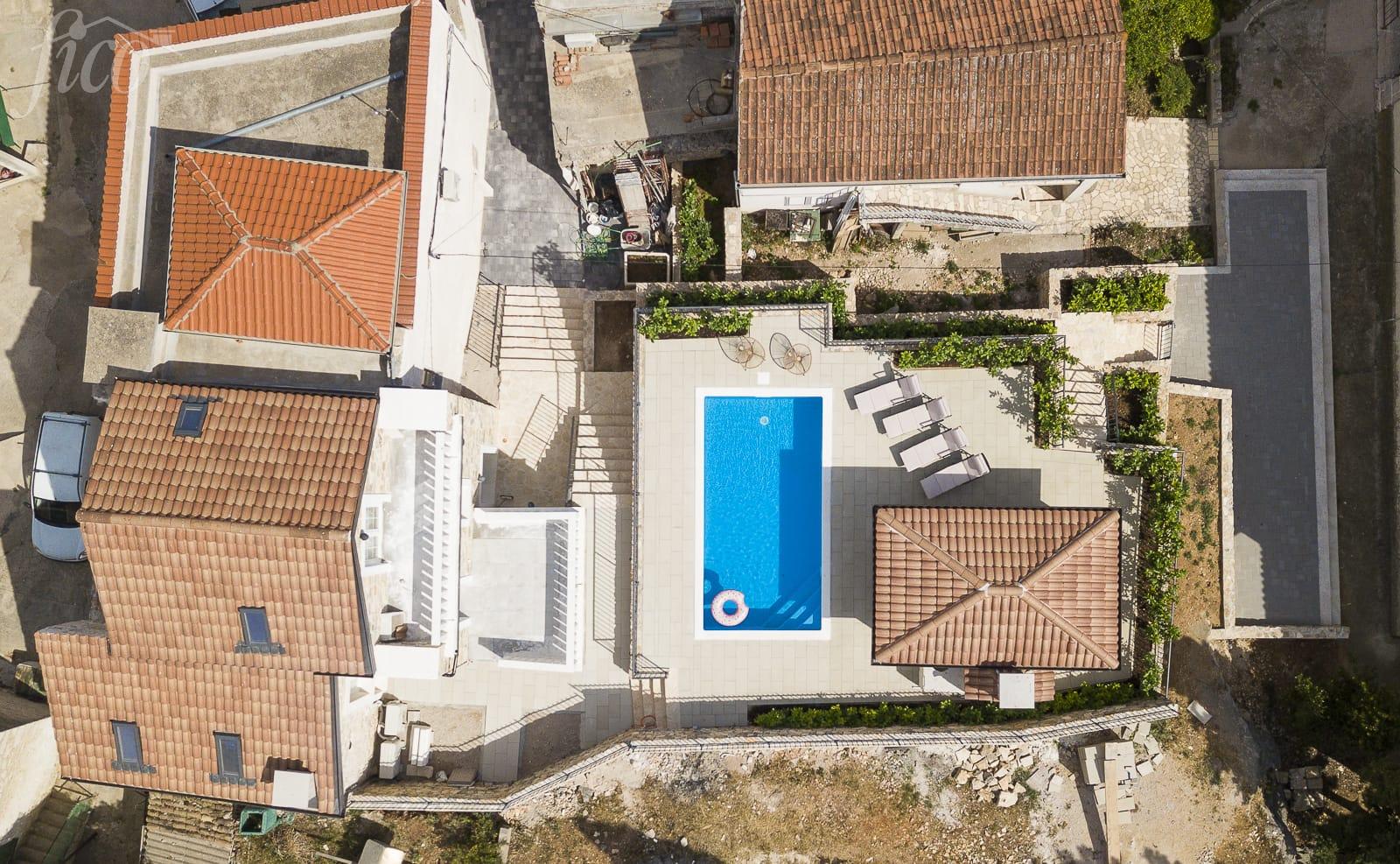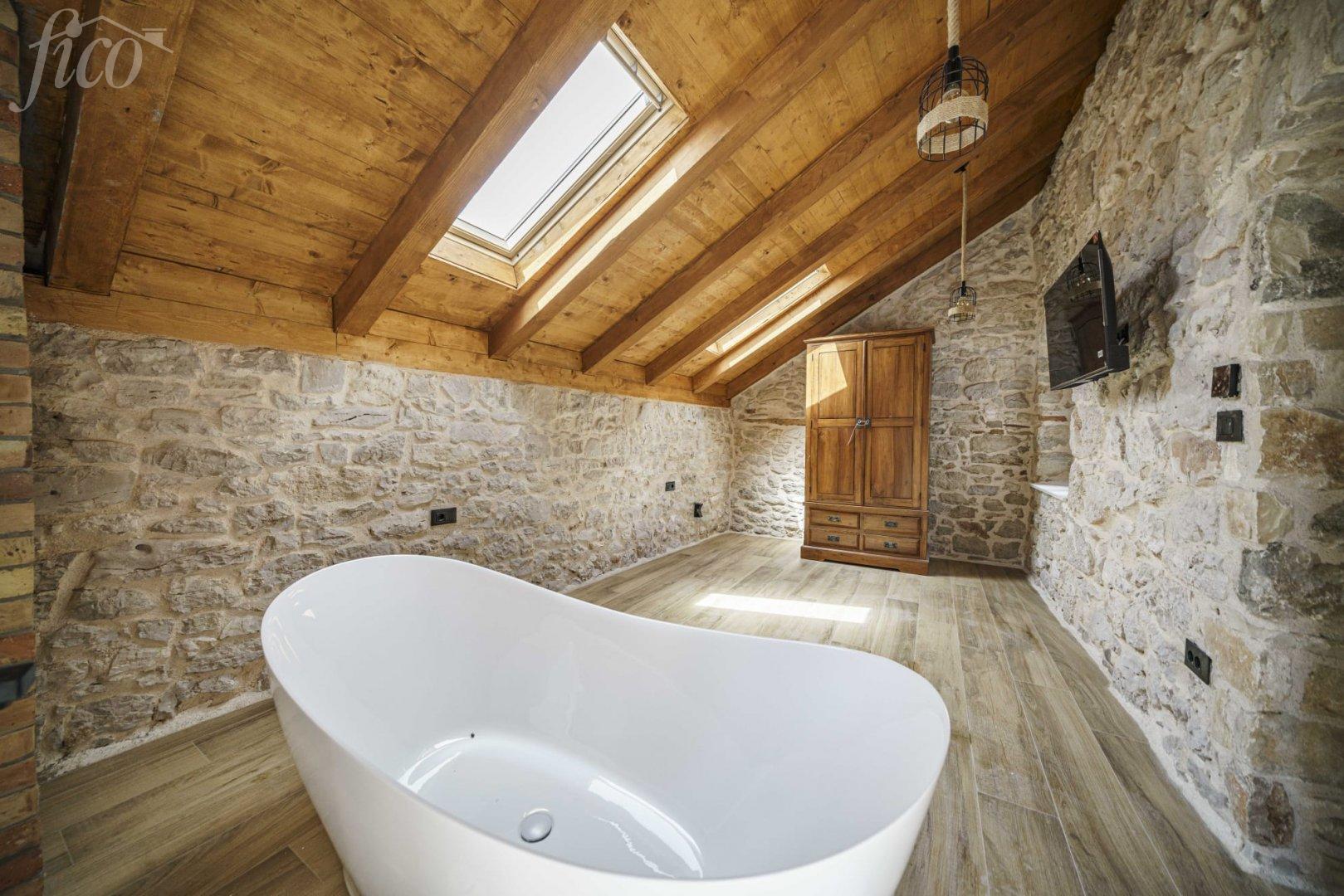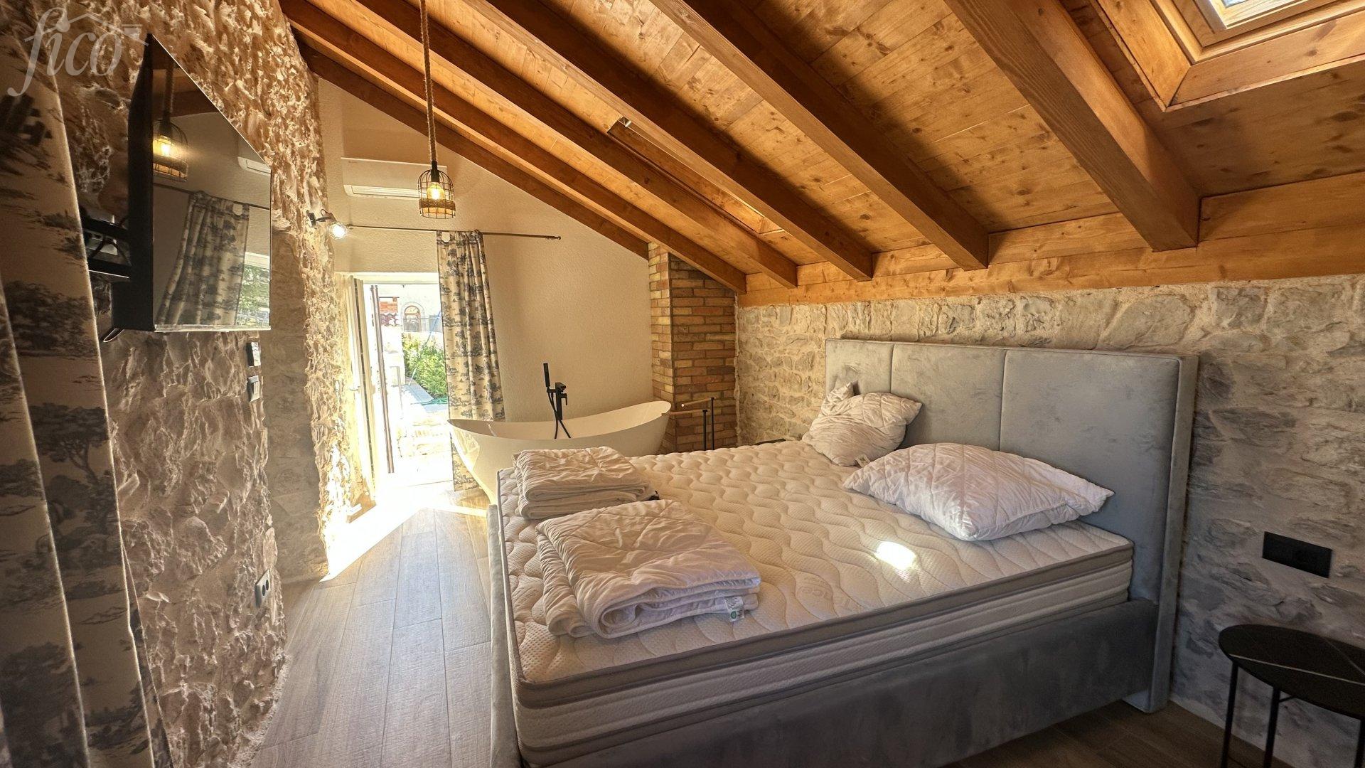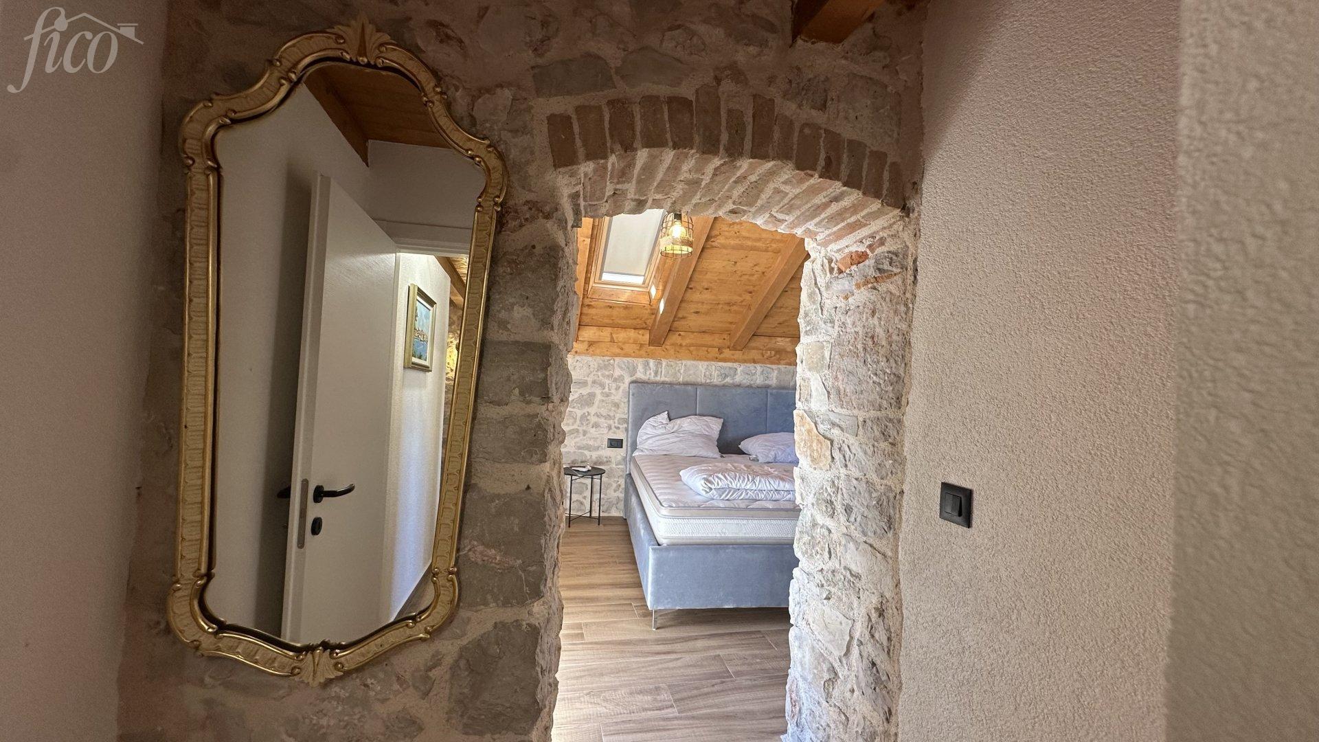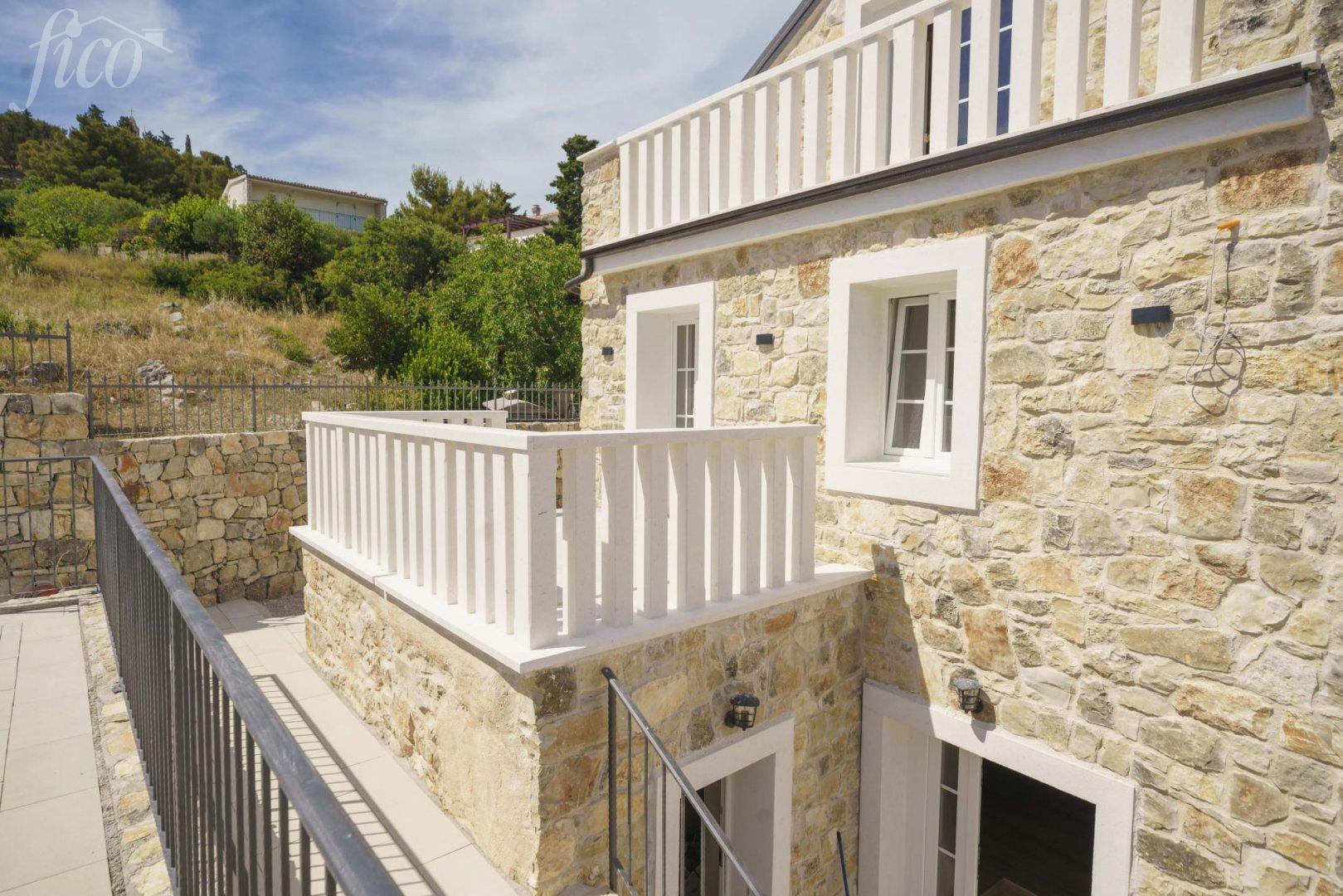 Nádherný, autentický samostatně stojící kamenný dům se zahradou, bazénem a výhledem na moře v centru Tribunje. Dům je třípatrový s celkovou užitnou plochou 137,91 m². V roce 2024 byl kompletně zrekonstruovaný v dalmatském stylu s použitím vysoce kvalitního vybavení a nábytku. Přízemí se skládá z kuchyně, obývacího pokoje, jídelny s vnitřním krbem/grilem a vinným sklepem, toalety a úložné místnosti. Vnitřní schodiště vede do prvního patra, kde se nachází chodba, koupelna a dvě ložnice, přičemž každá ložnice má vlastní terasu. V podkroví se nachází prostorná ložnice s koupelnou a terasou s výhledem na dvůr, bazén a moře. Plocha pozemku je 438 m2 a dvůr je kompletně oplocený a upravený s parkovacím místem a velkou plochou na opalování kolem bazénu a krásným přístřeškem s venkovním grilem. Nábytek je kompletně zahrnut v ceně.