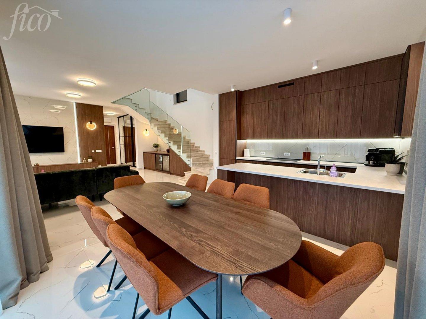 3 ložnice, 4 koupelny, celková výměra 551 m2, zastavěná plocha 286 m2, kolaudace 2026, energetická třída A.