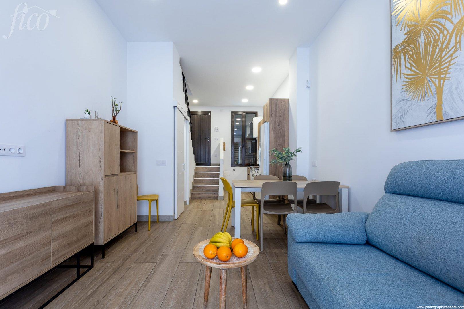Stylový a plně zařízený mezonetový apartmán v žádaném komplexu Altamar, který se nachází v samém srdci Playa de Las Américas. Tento jižně orientovaný apartmán o rozloze 74 m² nabízí komfortní bydlení ve dvou podlažích a je ideální jak pro vlastní bydlení, tak i jako výhodná investice do krátkodobých pronájmů (VV licence povolena). V přízemí se nachází světlý obývací pokoj s plně vybavenou americkou kuchyní, samostatná toaleta a vstup na prostornou terasu, ideální pro odpočinek nebo posezení s přáteli. V patře jsou dvě dvoulůžkové ložnice se zabudovanými skříněmi a plně vybavená koupelna. Jedna z ložnic má vlastní balkon. Apartmán je vybaven klimatizací, je kompletně zařízený a má bezpečnostní systém. Rezidenční komplex nabízí společný bazén a upravené zahrady. Pláž a pobřežní promenáda jsou vzdálené pouhých 5 minut chůze, stejně tak jako oblíbené atrakce jako Golden Mile nebo Siam Park. V okolí naleznete širokou škálu obchodů, restaurací a turistických služeb. Také Vám rádi pomůžeme se správou, údržbou a pronájmem Vaší nemovitosti.