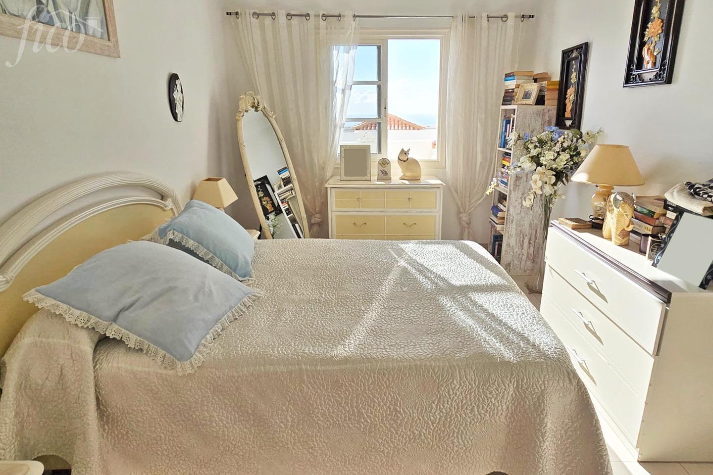 Útulný a prakticky řešený apartmán s 1 ložnicí v dobře udržovaném rezidenčním komplexu Balcón del Atlántico 2, nacházejícím se v klidné oblasti Torviscas Alto. Celková plocha nemovitosti činí 90 m², z toho 58 m² tvoří obytný prostor a 32 m² částečně krytá terasa s nádherným výhledem na oceán – ideální pro celoroční užívání si příjemného klimatu na Tenerife. Dispozice zahrnuje světlý obývací pokoj s jídelním koutem a přímým vstupem na terasu, samostatnou kuchyň s průhledem, jednu ložnici s prostornou vestavěnou skříní a kompletní koupelnu. Apartmán se nachází v 1. patře a nabízí skvělý komfort a funkční uspořádání. Rezidenční komplex disponuje společným bazénem a vyhrazeným parkovištěm pro obyvatele. Apartmán se prodává ve velmi dobrém stavu a je vhodný jak pro trvalé bydlení, tak i jako rekreační nemovitost.