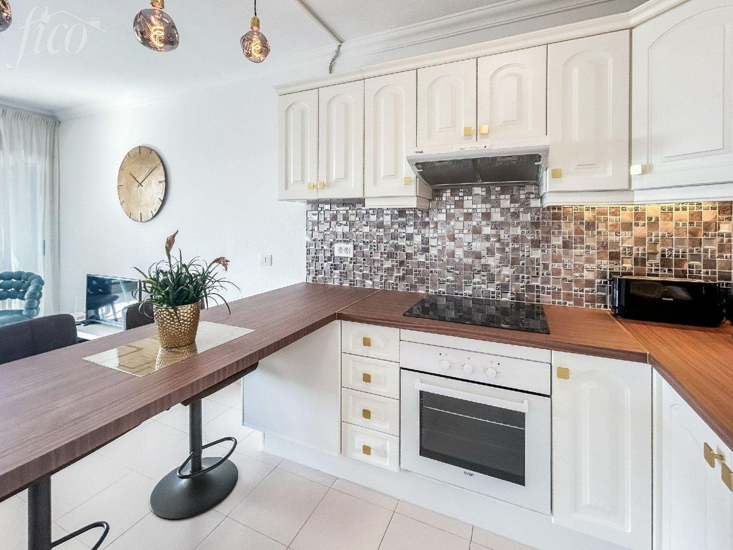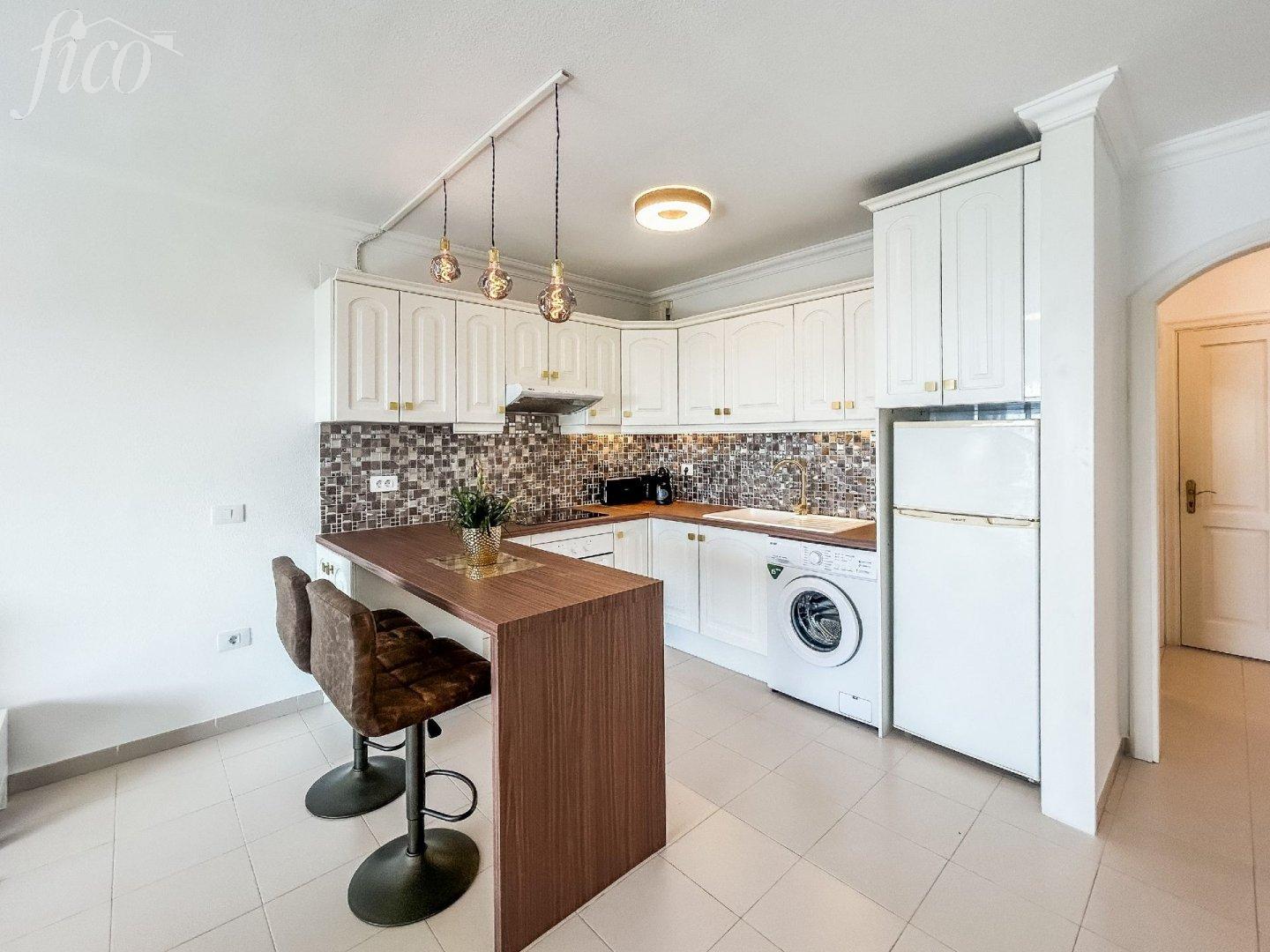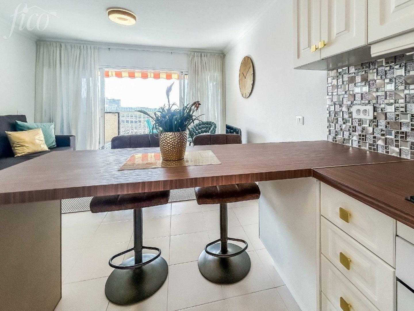 Stylově zrekonstruovaný apartmán v samém centru Callao Salvaje – oblíbené přímořské vesničky na jihu Tenerife. Nemovitost se nachází jen 200 metrů od pláže a v pěší vzdálenosti od všech služeb - supermarketů, restaurací, barů, lékárny, zdravotního střediska, kadeřnictví a zastávky MHD. Ideální volba pro ty, kdo hledají pohodlné bydlení bez nutnosti auta. Apartmán se nachází v posledním patře a má celkovou plochu 55 m². Dispozice zahrnuje prostornou ložnici s vestavěnými skříněmi, moderní koupelnu a plně vybavenou otevřenou kuchyň s kvalitními spotřebiči. Světlý obývací pokoj je vybaven stropním ventilátorem pro příjemnou ventilaci po celý rok. Z apartmánu si užijete nádherný výhled na oceán. Rezidenční komplex nabízí dva komunitní bazény a je pečlivě udržovaný. Apartmán je prodáván s licencí na krátkodobé pronájmy (VV), což z něj činí skvělou investici nebo perfektní bydlení k osobnímu užívání.