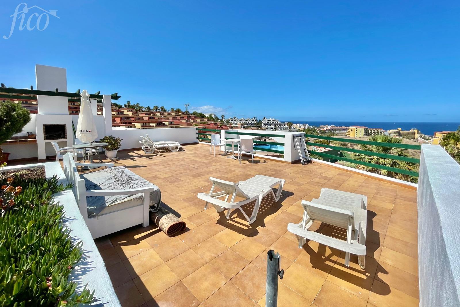 Představujeme Vám na prodej prostorný byt o rozloze 170 m² (84 m² obytné plochy) s nádherným panoramatickým výhledem na oceán a Kanárské ostrovy – La Gomera, El Hierro a La Palma. Byt nabízí obývací pokoj s otevřenou kuchyní a přístupem na terasu o velikosti 16 m², dvě prostorné ložnice, koupelnu a samostatné WC. Dominantou této nemovitosti je velké soukromé solárium o rozloze 70 m², které disponuje grilovací zónou a na které se dostanete po venkovním schodišti. Byt se nachází v rezidenci bez výtahu, ale s bezpečnostní službou, společnou zahradou a sportovními hřišti. V budoucnu je plánována renovace bazénu. Krátkodobé pronájmy jsou povoleny s licencí VV. Nemovitost se nachází v těsné blízkosti nákupního centra X-Sur a pouze 15 minut chůze od pláží. Poplatky za správu: 179 € / měsíc IBI: 360 € / rok. 170 m² obytné plochy, společná zahrada, zařízená, otevřená kuchyně, dobrý stav, zelená plocha, dětské hřiště, výhled na oceán, 2 ložnice, 2 koupelny, 1. patro, terasa