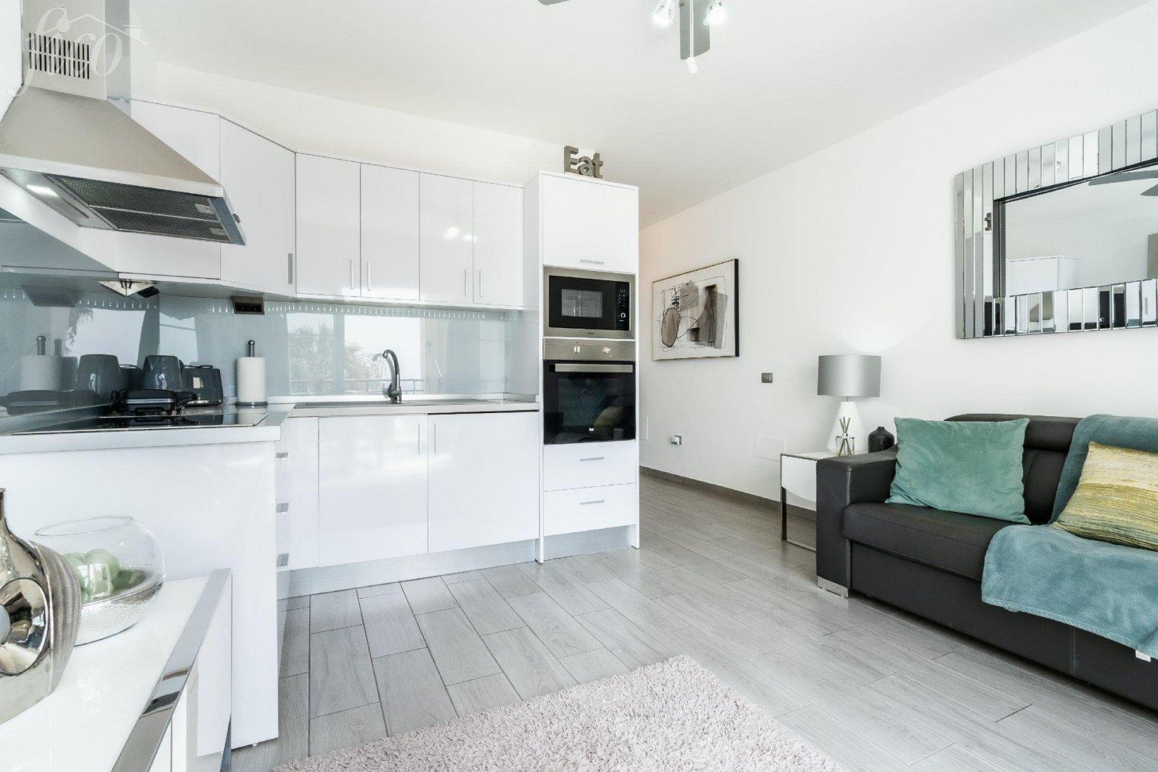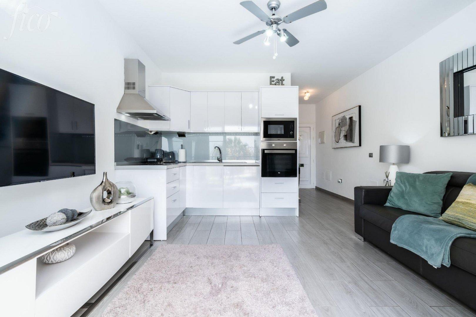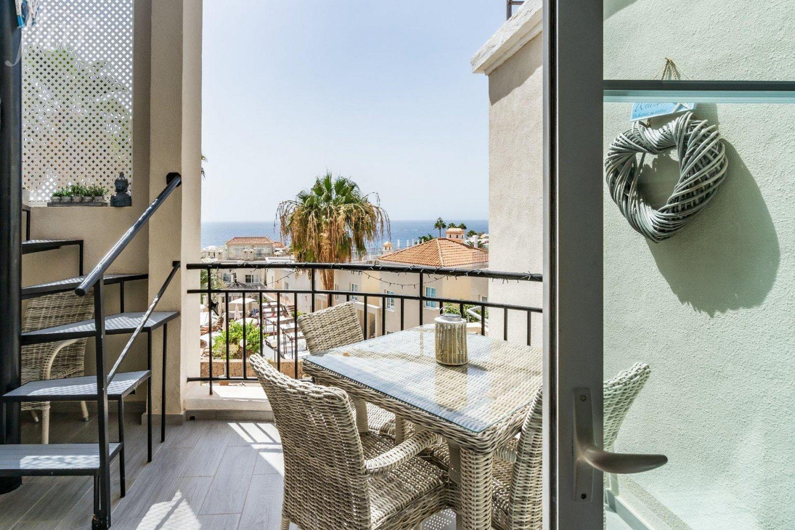 Tento stylový apartmán prošel kompletní rekonstrukcí s důrazem na kvalitu a detail. Interiér působí vzdušně, je vkusně zařízen v moderním středomořském stylu a nabízí maximální pohodlí. Díky velkým oknům a orientaci do klidné části komplexu je prostor světlý a útulný po celý den. Komplex Los Olivos patří mezi nejvyhledávanější rezidence v oblasti Costa Adeje. Nabízí upravené společné prostory, několik bazénů, sluneční terasy, restauraci i přímý přístup na pobřežní promenádu. Jen pár minut chůze od apartmánu se nachází pláž s jemným pískem, butiky, kavárny i široká nabídka restaurací. Nemovitost je ideální nejen jako rekreační bydlení u moře, ale také jako investiční příležitost díky vysoké poptávce po pronájmech v této oblasti. Díky své poloze a stavu po rekonstrukci nabízí bezstarostné užívání bez nutnosti dalších investic. Poplatky: komunita 103 € / měsíc, IBI 255 € / rok, odpad 40 € / každých 6 měsíců. Užitná plocha interiéru: 43 m², zrekonstruovaný balkon: 10 m², soukromé solárium 40 m² s výhledem na Atlantský oceán + balkon, 1 ložnice, 1 koupelna, plně vybavená kuchyně a světlý obývací pokoj s klimatizací a vstupem na balkon, komplex s bazény, klidná lokalita jen pár kroků od pobřežní promenády, turistická licence