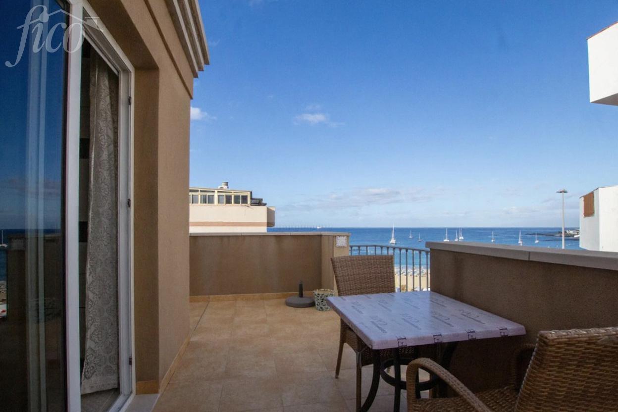 Exkluzivní penthouse na prodej v první linii u pláže v Los Cristianos na jihu Tenerife. Tato prostorná nemovitost nabízí celkovou plochu 130 m² a výjimečnou terasu o velikosti 57 m², která obklopuje celý apartmán a poskytuje panoramatické výhledy na oceán, přístav i slavné pláže Playa de Los Cristianos a Playa de Las Vistas.