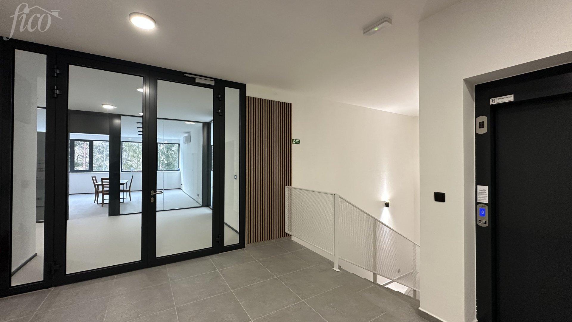 K dispozici je prostor ve 2. NP o výměře 83 m2, jedná se o jednu místnost 12,2 x 6,8 m2 s vlastním sociálním zařízením a společnou kuchyňskou linkou v chodbě. Prostor je vhodný např. pro projekční kanceláře, grafiky, reklamní agenturu, prodejnu, pojišťovací nebo bankovní kanceláře, případně z oboru zdravotnictví, kosmetika, estetická medicína…)