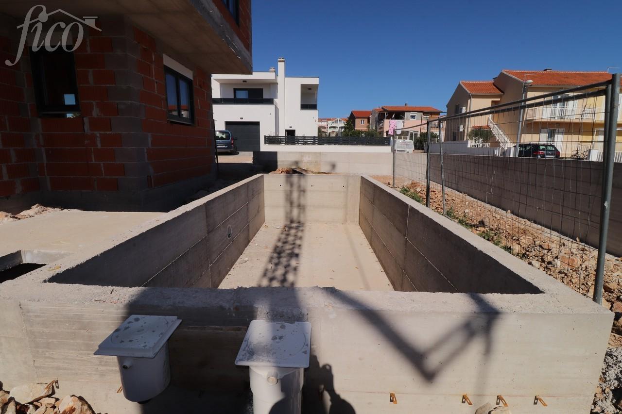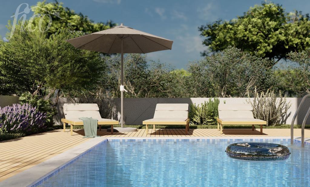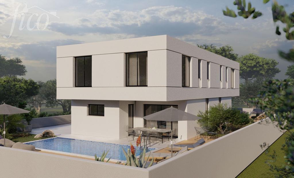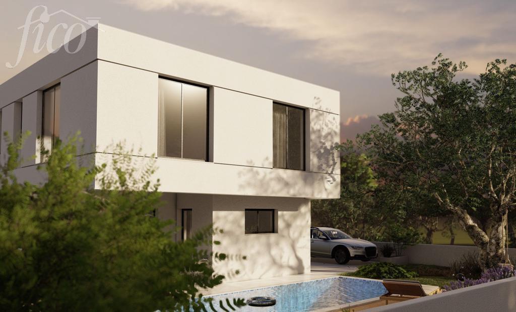 Novostavba, krásný rodinný dům (dvojdomek) s moderní architekturou a výborným dispozičním řešením v klidné lokalitě. Dům má dvě nadzemní podlaží (přízemí + 1. patro) o celkové užitné ploše 108,64 m2 s upravenou zahradou cca 200 m2, velkou krytou terasou 17,36 m2, venkovním bazénem 22 m a parkováním pro 2 auta. Přízemí tvoří vstup, toaleta, velký obývací pokoj s kuchyní a jídelnou se vstupem na krytou terasu a dvůr. Vnitřní schodiště vede do 1. patra kde se nachází chodba, tři ložnice (z toho jedna má vlastní koupelnu) a samostatná koupelna. Dům bude vybaven bezpečnostními dveřmi, okny z PVC se sítěmi proti hmyzu a elektrickými žaluziemi, kvalitní dlažbou a laminátem v pokojích, podlahové vytápění v celém domě (tepelné čerpadlo), klimatizace v obývacím pokoji, jedna klimatizace v prvním patře a příprava na klimatizaci ve všech ložnicích, telefon a internet, satelitní TV, dveřní videotelefon.