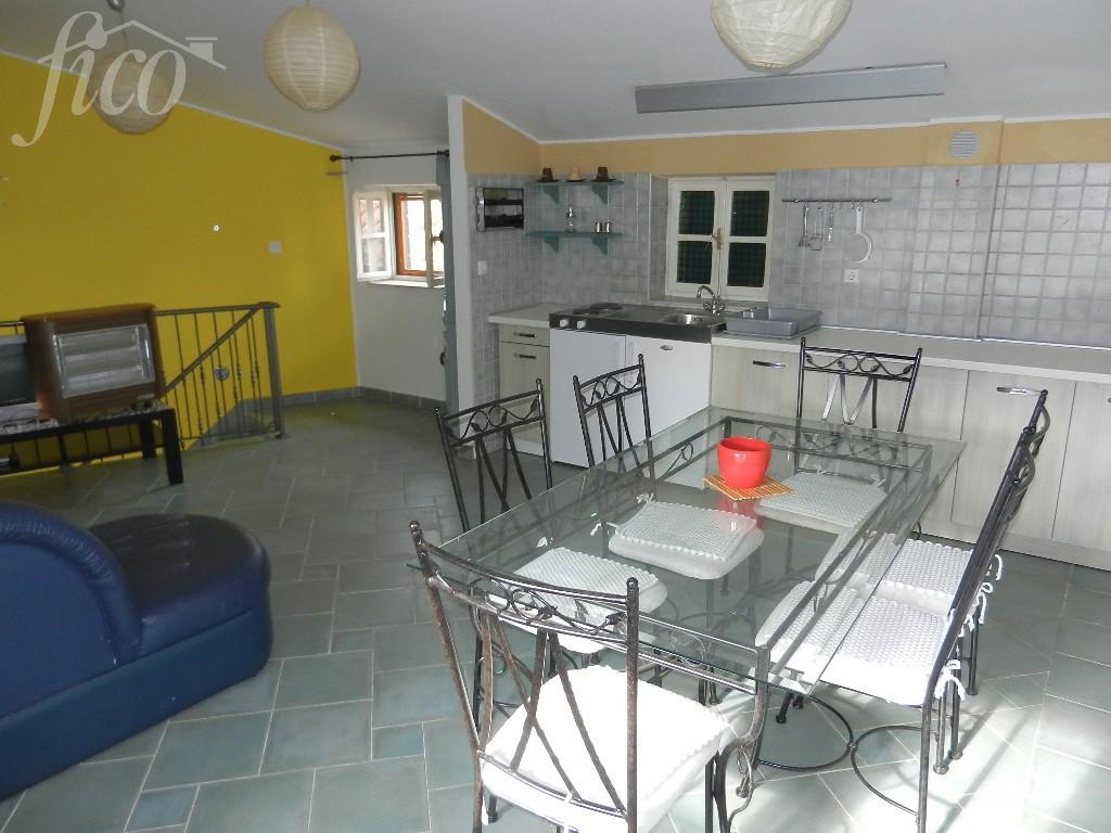 Kamenný dům s nejlepší polohou v centru Vodice, vedle hlavního nábřeží/promenády, 2. řada k moři. Dům je kompletně zrekonstruovaný s 90 m2 obytné plochy, rozdělený do tří podlaží. V přízemí se nachází krčma 30 m2 se samostatným vchodem. V domě tvoří první patro a podkroví jeden pohodlný dvoupatrový apartmán, který se skládá z prostorné haly, dvou ložnic, koupelny, prostorného obývacího pokoje s kuchyní a jídelnou s krásným výhledem na moře. Dům má příjezd autem a parkování je možné na nedalekém veřejném parkovišti. Rekonstrukce proběhla v r. 2008, vzdálenost k moři 20 m.