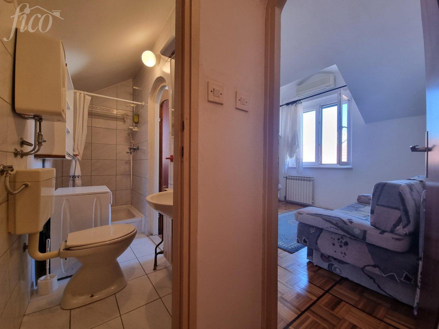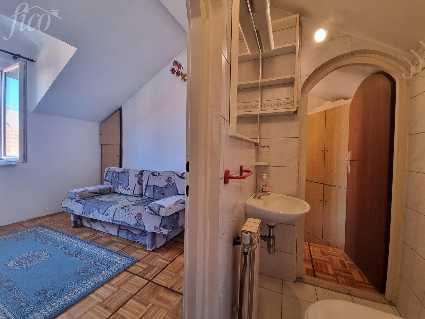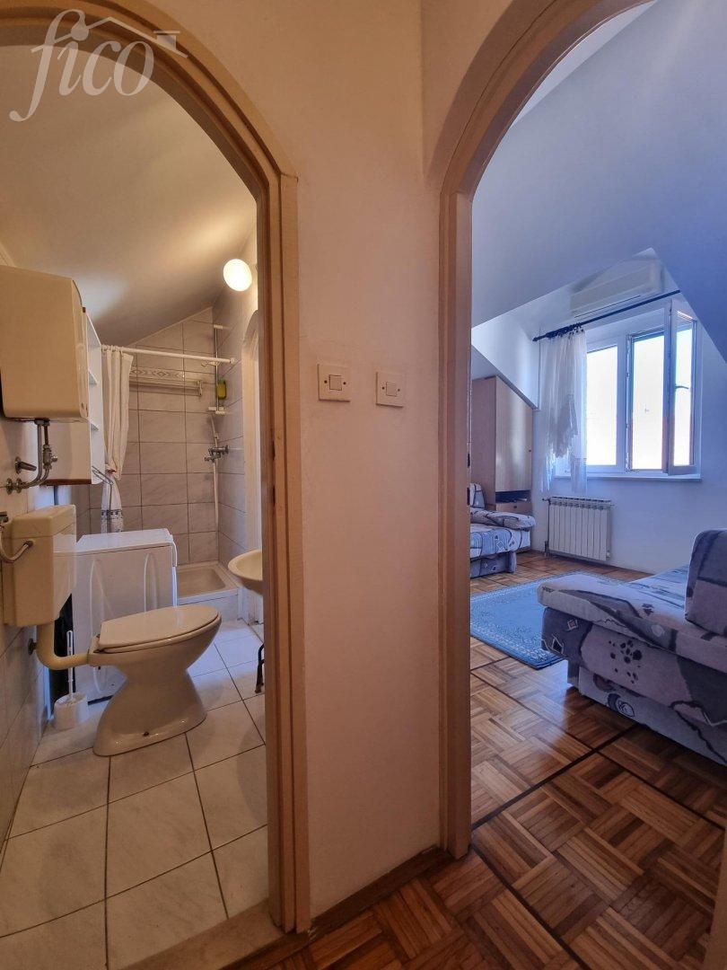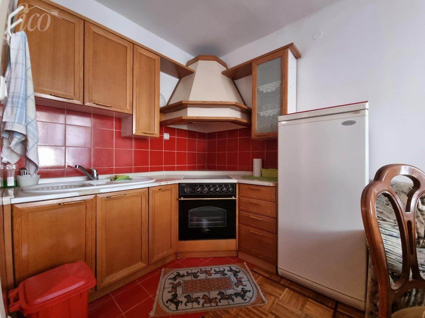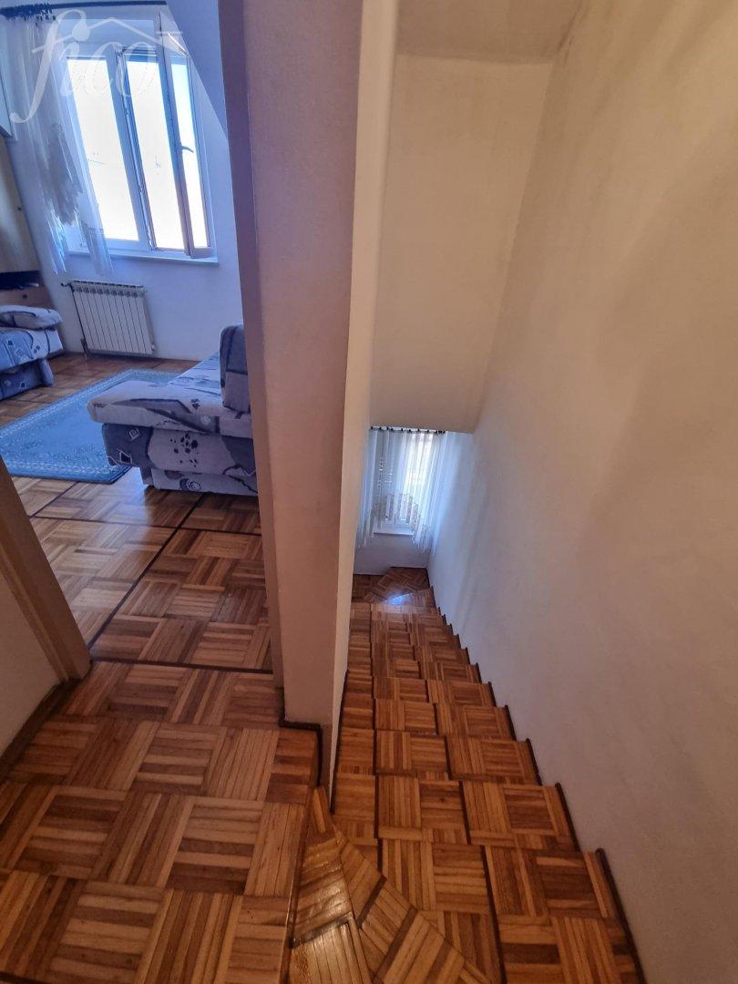 Zrekonstruovaný kamenný dům v centru Vodice, ve starém městě, 50 m od nábřeží. Kamenný dům má tři podlaží o celkové užitné ploše 63 m2. Dům se skládá z jednoho dvoupodlažního bytu (1. patro a podkroví), který se skládá z obývacího pokoje, kuchyně, ložnice a koupelny, a přízemí, které má samostatný vchod, je uspořádáno jako obchodní prostor 17 m2 s toaletou a šatní skříní. Obchodní prostory mají velkou prosklenou stěnu orientovanou do ulice, bezpečnostní dveře. Dům byl nově postaven v roce 2009. Je vybaven ústředním topením (elektřina), klimatizací, bezpečnostními dveřmi, plastovými okny s žaluziemi. Příjezd do domu je možný autem.