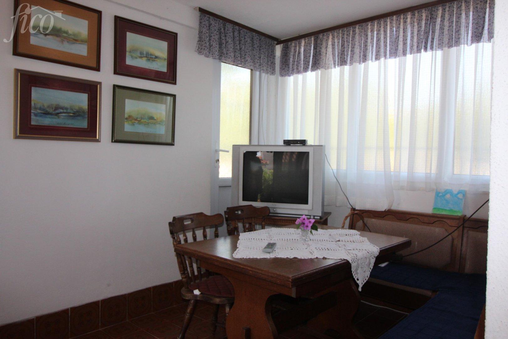 Ve velmi klidné lokalitě se nachází dvojdům o celkové užitné ploše 148,82 m2, na pozemku 270 m2. Dům se skládá z přízemí, prvního patra a podkroví. V přízemí se nachází byt 37,03 m2, který se skládá z verandy, vstupu, obývacího pokoje, kuchyně, ložnice, koupelny. K bytu dále náleží dvě kůlny a komora ve dvoře o výměře 13,68 m2. Venkovní schody vedou do 1. NP, kde je terasa se vstupem do druhého bytu 31,79 m2, který se skládá z kuchyně, ložnice s balkonem a koupelny. Venkovní schody vedou do podkroví, které má plochu 26,93 m2. Na pozemku je další domek s bytem 39,39 m2 a venkovním grilem. Dům je zařízený a připravený k nastěhování, nábytek je zahrnut v ceně. Vzdálenost od moře je 1000 m a od centra města 1200 m. Dům byl postaven v r. 1972, rekonstrukce proběhla v r. 1995.