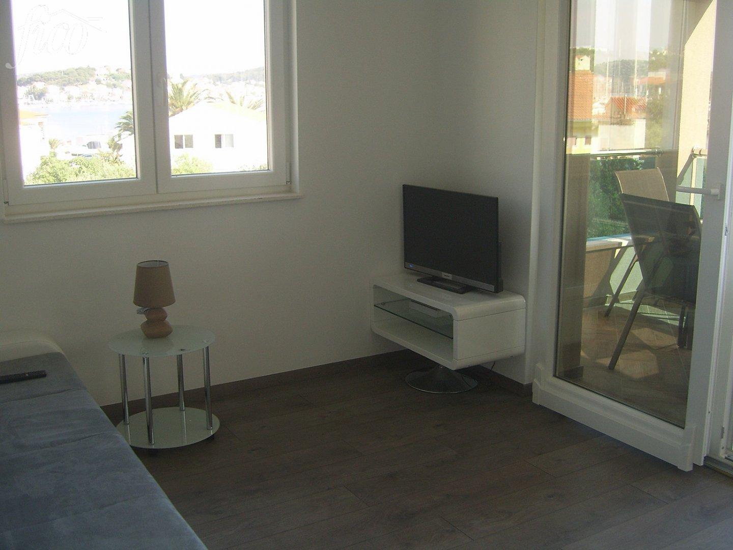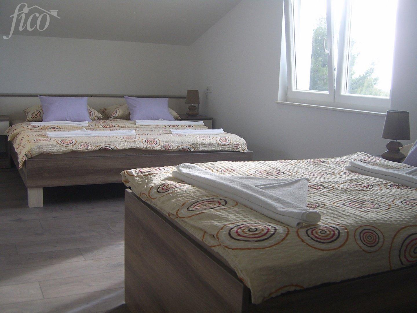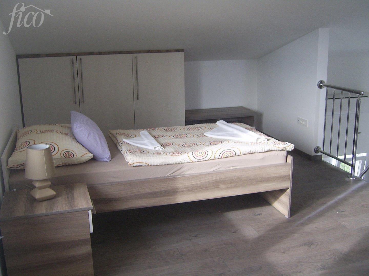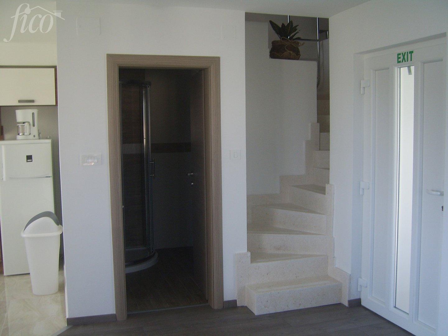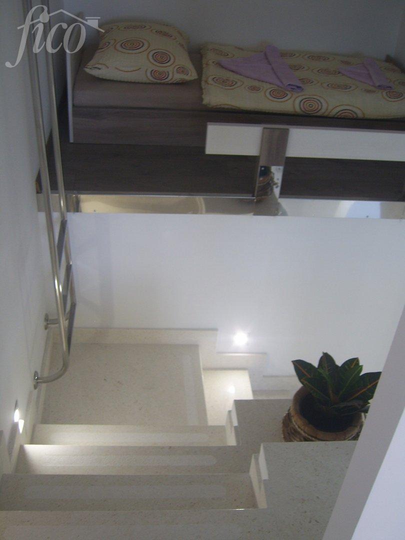 Další duplex v budově má výměru 65 m2 a ubytovací kapacitu 7 osob. Je moderní, plně klimatizovaný, mezonetový. V horním patře ložnice s manželskou postelí a jedním samostatným lůžkem. Vstup na krásnou terasu s lehátky. Samostatné WC. Spodní patro ložnice s manželskou postelí (nebo dvěma oddělenými), koupelna se sprchovým koutem a pračkou a obývací pokoj s rozkládací pohovkou, plně vybaveným kuchyňským koutem a výstupem na pěknou terasu. Jižní orientace s výhledem na moře a přístav.