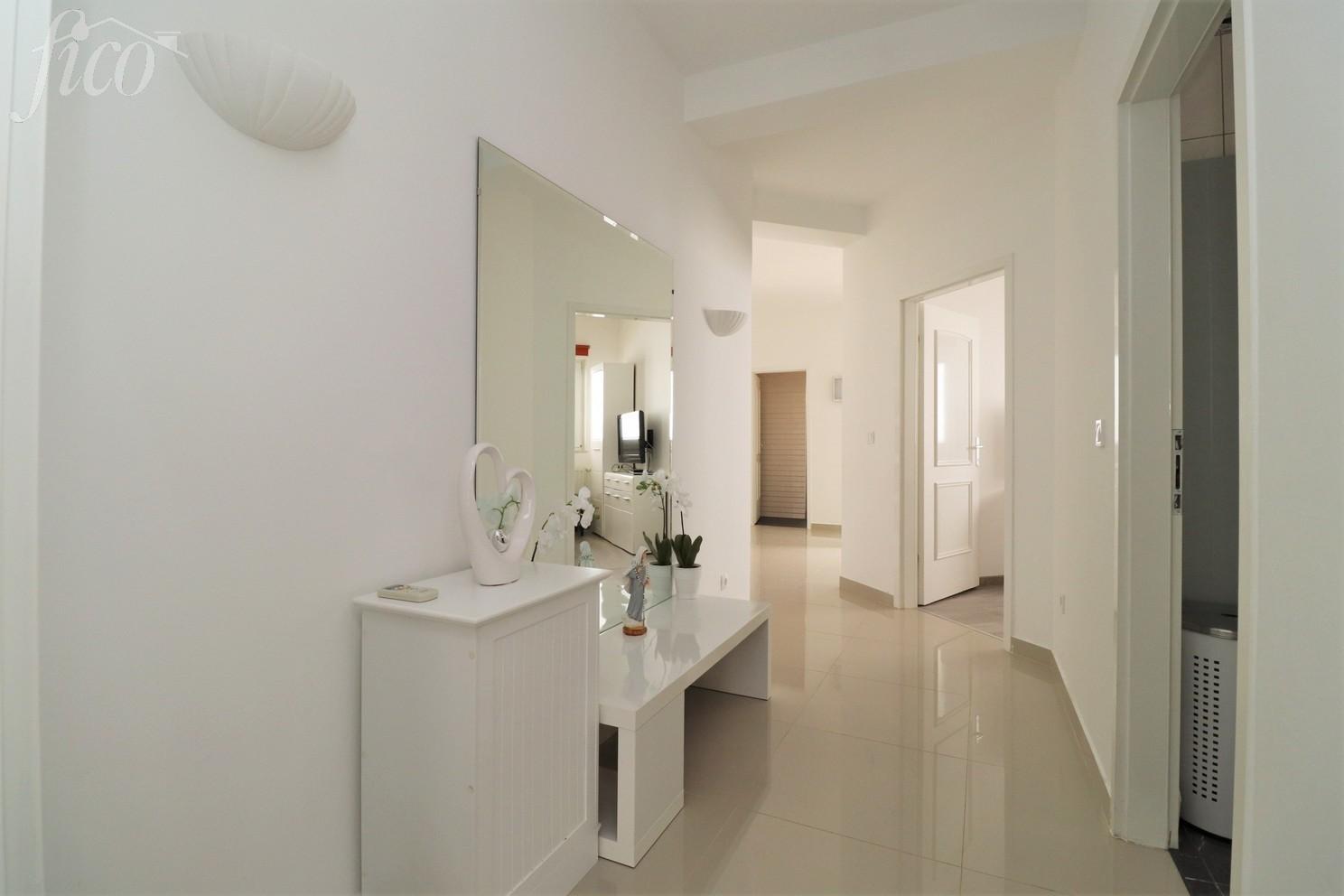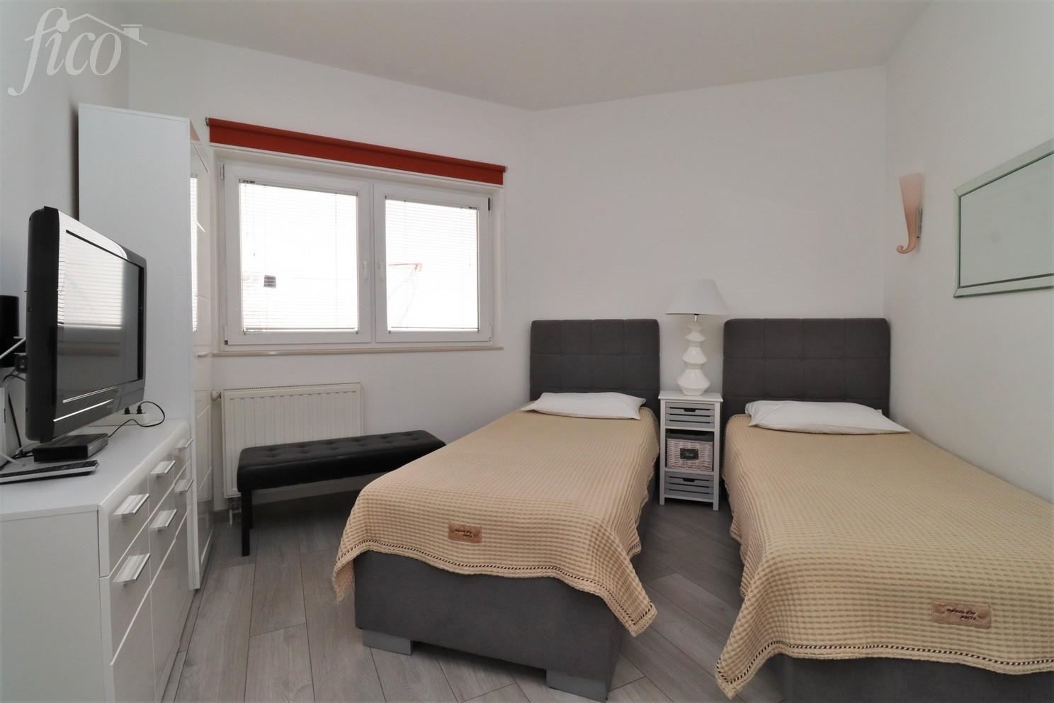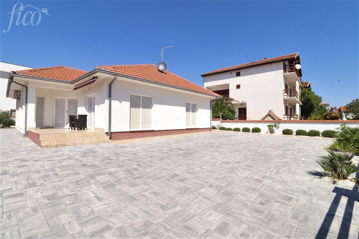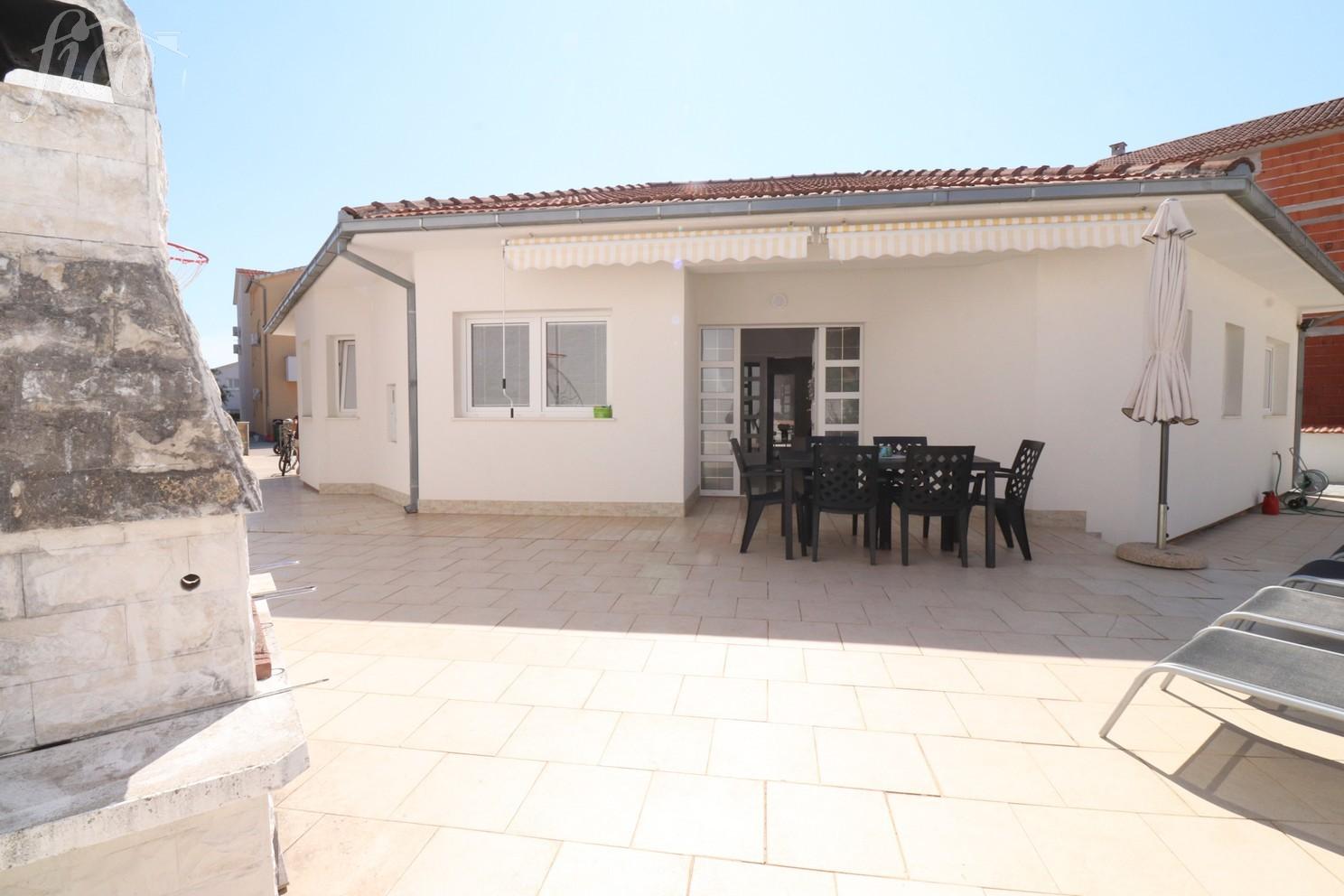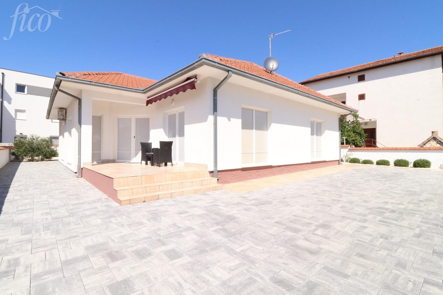 V klidné lokalitě, v bezprostřední blízkosti veškeré městské vybavenosti i pláže, se nachází krásný samostatně stojící bungalov o celkové obytné ploše 135,17 m2. Dům sestává ze tří ložnic, komory, dvou koupelen, dvou chodeb, velkého obývacího pokoje, kuchyně s jídelnou, velké terasy na jižní straně a velké terasy na severní straně. Je postaven na pozemku 665 m2, je celý oplocený a upravený s dostatkem prostoru pro stavbu bazénu i parkovací plochu. Dům je kompletně zařízený, klimatizovaný, ústřední elektrické vytápění a vše je zahrnuto v ceně. Vzdálenost k moři je 700 m, do centra 1200 m. 4 parkovací místa, bezbariérový přístup, terasy 13,90 a 40 m2, rok výstavby 2002.