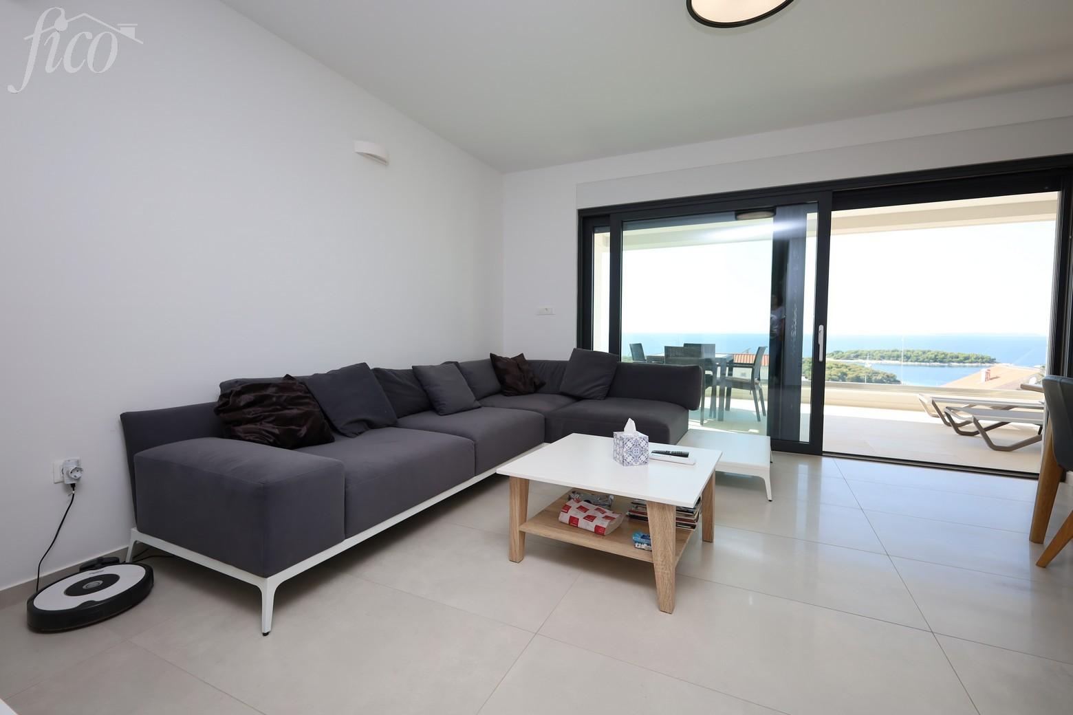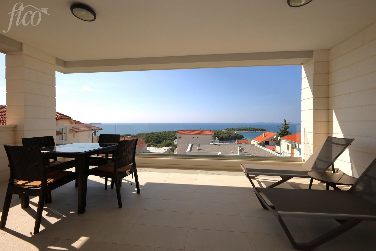 Apartmán se 3 ložnicemi v klidné části vyhledávaného Primoštenu. Orientován na jihozápadní stranu, má 105,73 m2 užitné plochy, sestává z prostorné vstupní haly/chodby, dvou koupelen, kuchyně s jídelnou a obývacím pokojem, tří ložnic a velké zastřešené terasy 20,34 m2 s panoramatickým výhledem na moře a starou část Primoštenu. Byt je kompletně zařízený, nábytek je zahrnut v ceně. Kvalitní okna se žaluziemi, sítěmi proti hmyzu, bezpečnostními dveřmi, moderním sociálním zařízením, klimatizací pro vytápění a chlazení v každé místnosti, kvalitním vybavením. Budova s výtahem, byt v 1. patře. K bytu náleží jedno venkovní parkovací stání. Rok výstavby 2020, vzdálenost od moře 430 m, vzdálenost od centra 500 m.