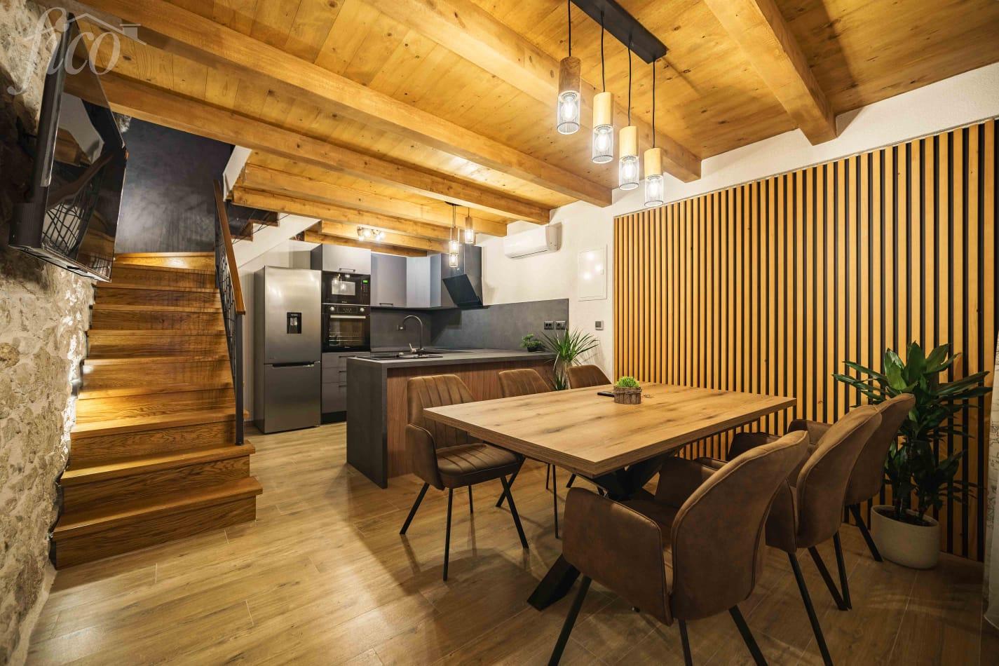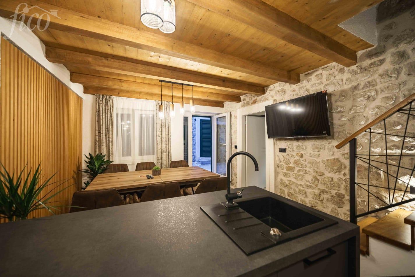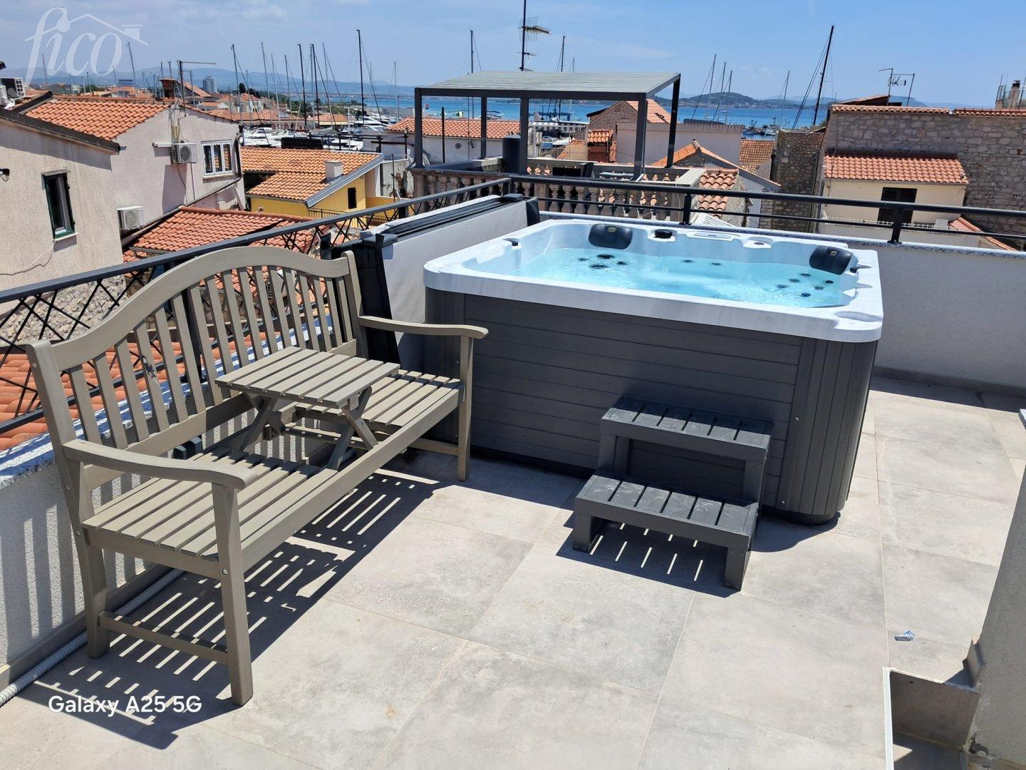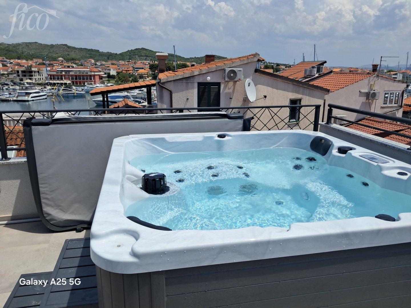 V srdci Tribunje, pár kroků od moře, se nachází luxusní kamenný dům, který nabízí nejvyšší pohodlí a eleganci. Tato unikátní nemovitost, kompletně zrekonstruovaná v roce 2023, se rozkládá na čtyřech podlažích a má celkovou užitnou plochu 144 m2. V přízemí tohoto krásného domu se nachází vstupní prostor se schodištěm, moderně vybavená kuchyně a ložnice s vlastní koupelnou a šatnou. V prvním patře je prostorný obývací pokoj a další ložnice také s koupelnou a šatnou. Druhé patro nabízí průchozí pokoj, který může sloužit jako pracovna se vstupem na terasu, a ložnici s vlastním vstupem na terasu a koupelnu. Střešní terasa, která je přístupná z terasy ve druhém patře, nabízí nádherný 360stupňový výhled na moře a je vybavena luxusní jacuzzi pro dokonalý požitek. Dům je kompletně zařízen kvalitním moderním nábytkem, plastová okna s hliníkovými okenicemi. Pro maximální pohodlí je dům vybaven podlahovým vytápěním a klimatizací v každé místnosti. Tento jedinečný a luxusní dům je ideální pro ty, kteří ocení rustikální kamenné vily a chtějí si užít veškerý komfort života v blízkosti moře. Terasy o výměře 38,20 m2 a 16,40 m2