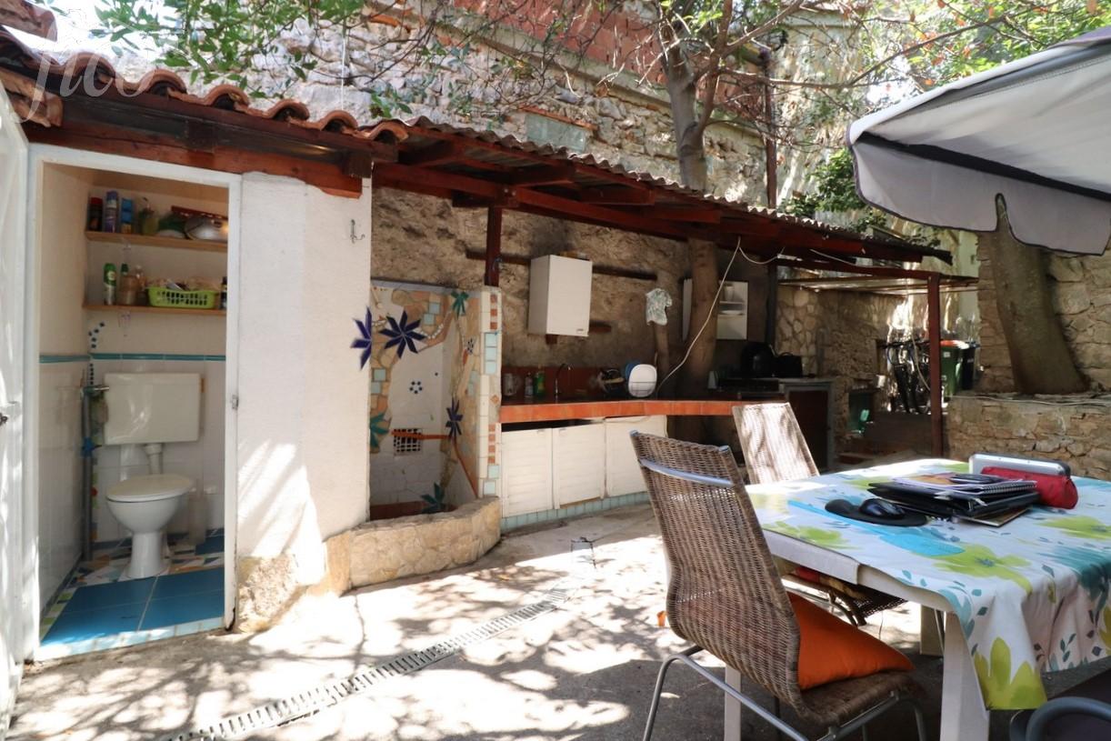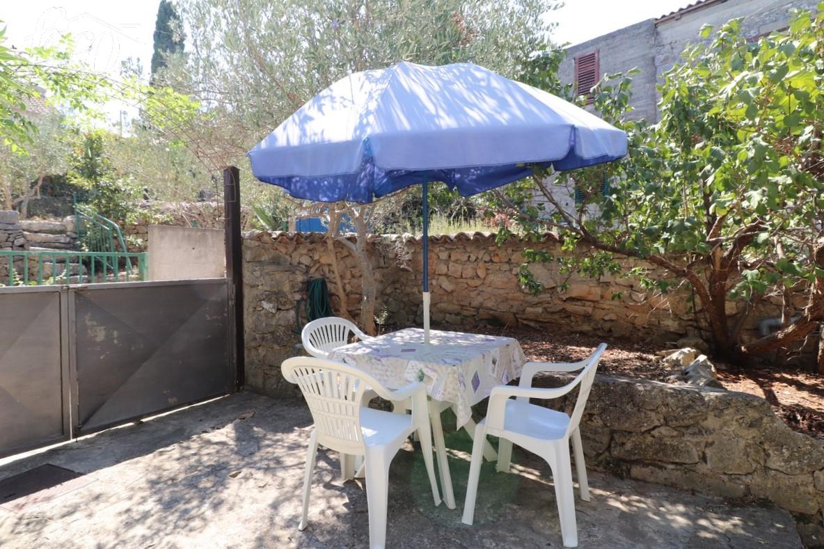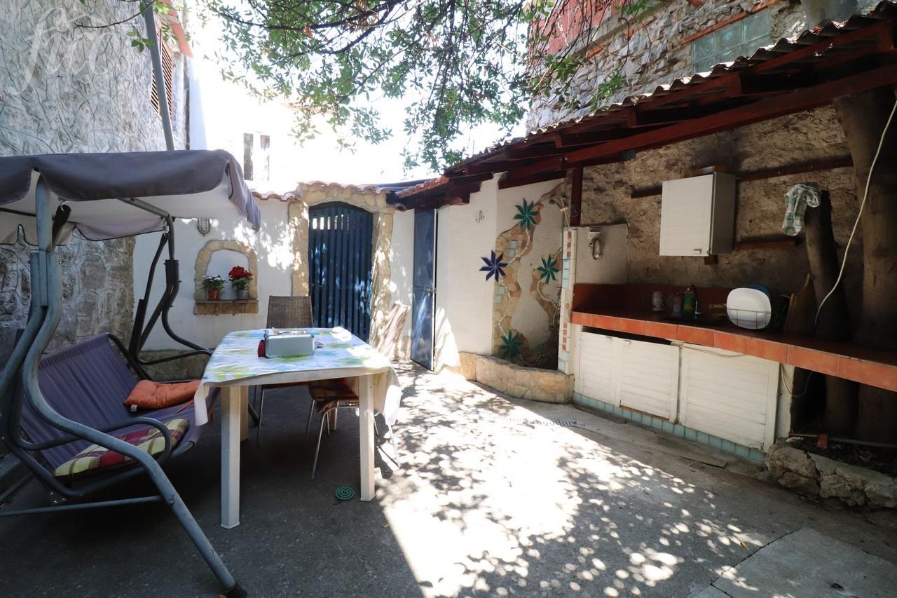 Murter - Staro selo, přízemní dům se suterénem a galerií, celková užitná plocha 83,14 m2 na pozemku 146 m2. V přízemí je kuchyň s jídelnou, obývací pokoj a koupelna, dále vnitřní schodiště na galerii. Před domem je dvůr se zahradou, na střešní terasu a venkovní sprchu vedou venkovní schody a prostor pod schodištěm slouží jako sklad. Dům je podsklepený, kde je umístěna krčma a ve dvoře před krčmou letní kuchyně, další venkovní sprcha a WC a komora. Dům nemá parkoviště, příjezd k domu je možný menším vozidlem a parkování je možné 100 m na veřejném parkovišti. Vzdálenost na dobře udržovanou pláž Slanica je 1300 m, do centra 800 m. Rok výstavby 1982, rekonstrukce v r. 2010.