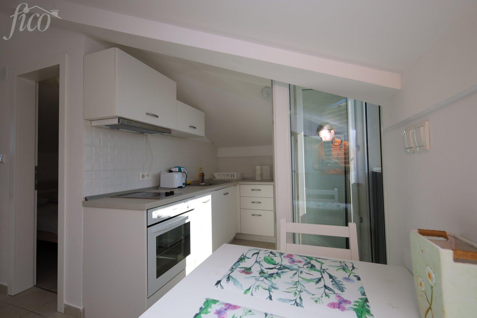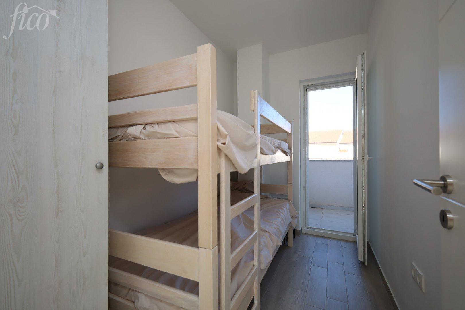 Dvojdům v atraktivní lokalitě Srima s užitnou plochou 167 m2 s upraveným dvorem/parkovištěm 16 m2. Nemovitost je vnitřně rozdělena na 3 samostatné byty. Mezonetový byt se nachází v přízemí a 1. patře a dva byty jsou v podkroví. V přízemí a v 1. patře je dvoupatrový byt, kde v přízemí je koupelna, kuchyň a obývací pokoj a schodiště vedoucí do 1. patra, kde jsou tři ložnice, terasa a koupelna. Vnitřní schodiště vede do podkroví, kde jsou umístěny dva samostatné byty 1+1. Všechny apartmány jsou klimatizované a plně zařízené, nábytek je zahrnut v ceně. K nemovitosti náleží upravený dvůr/terasa 152 m2, na kterém je možné zaparkovat 4 auta. Pouze 300 m od moře a dobře udržované pláže a 270 m od centra města. Rok výstavby 2017.