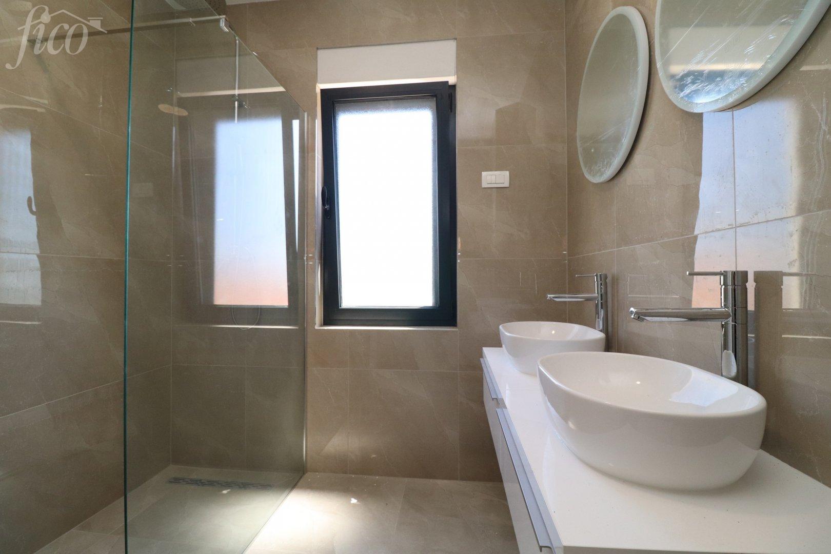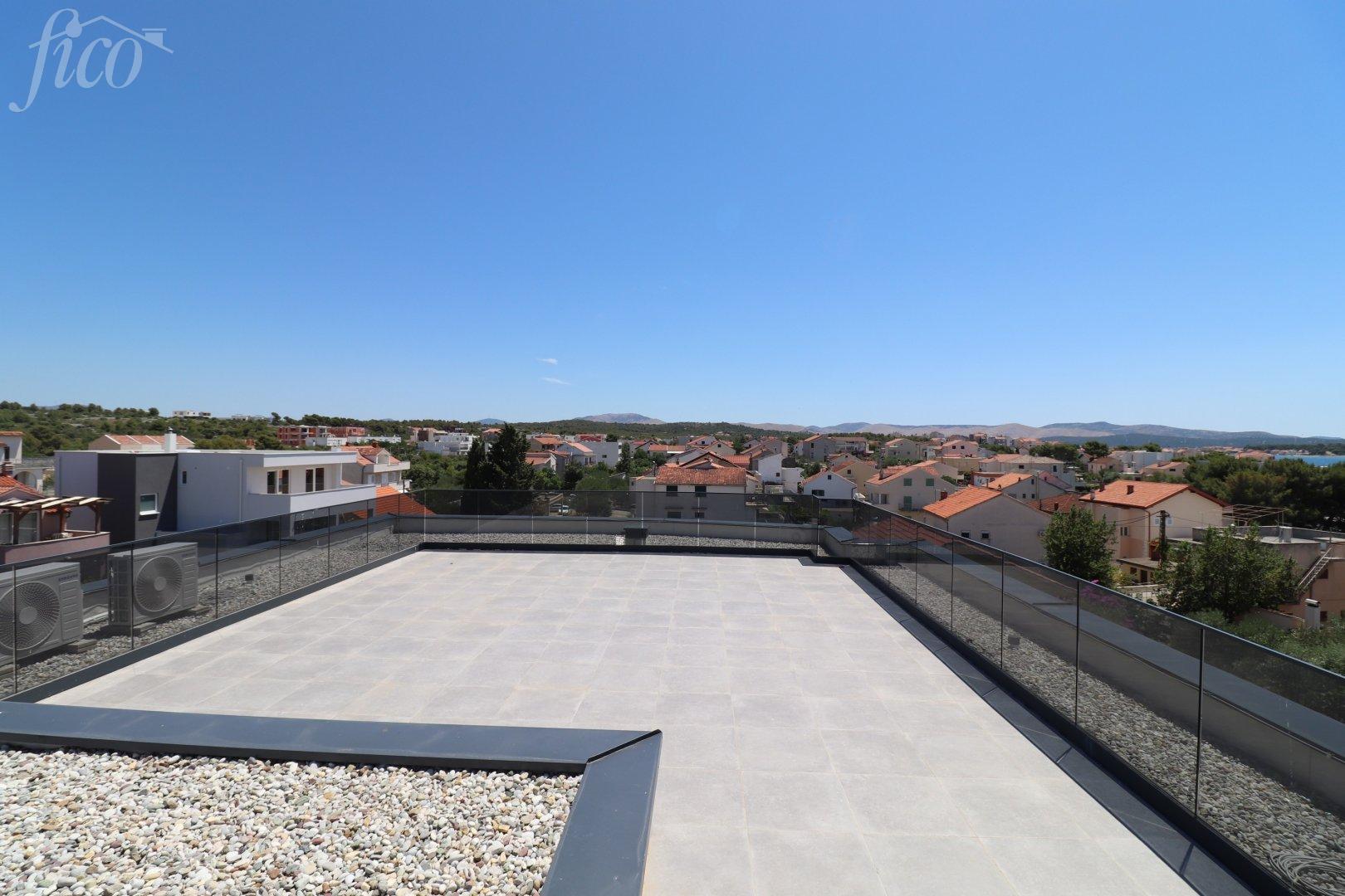 Komfortní mezonetový byt v 1. patře + 2. patře v bytovém domě, který se nachází pouhých 200 metrů od pláže. Byt je orientován na severovýchod a má celkovou užitnou plochu 140,46 m². Skládá se z chodby, toalety, obývacího pokoje s kuchyní a jídelnou a vstupem na terasu v 1. patře. Vnitřní schodiště vede do 2. patra, kde se nacházejí tři ložnice (z nichž 1 ložnice má vlastní koupelnu) a koupelny. K bytu náleží jedno garážové stání a výhradní užívání střešní terasy o rozloze 109,35 m². Vysoce kvalitní vybavení: keramika, sanitární keramika, tesařské práce, podlahové vytápění v koupelnách, klimatizace, moskytiéry. Vzdálenost do centra je 750 m, k moři / pláži 200 m. 3 ložnice, 2 koupelny, 3 toalety, 1 garážové parkovací místo, rok výstavby 2024.
