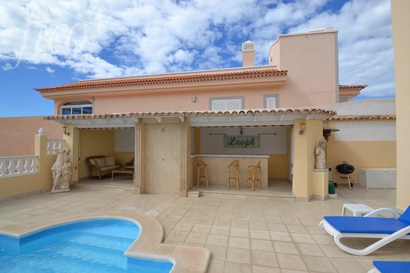 S potěšením vám nabízíme tuto krásnou vilu na prodej, která se nachází v Callao Salvaje v klidné oblasti a v pěší vzdálenosti od pláže a veškeré turistické infrastruktury: hospody, restaurace, kavárny, obchody. Vila má pozemek o rozloze 500 m² a dům o rozloze 213 m²: prostorný obývací pokoj s velkou terasou a fantastickým výhledem na oceán a hory, 5 ložnic (3 dvoulůžkové a 2 jednolůžkové), 3 koupelny, soukromé vyhřívané bazény se sluneční terasou a barem u bazénu. Vaše příležitost k investici! Doporučuji vidět vilu osobně.
