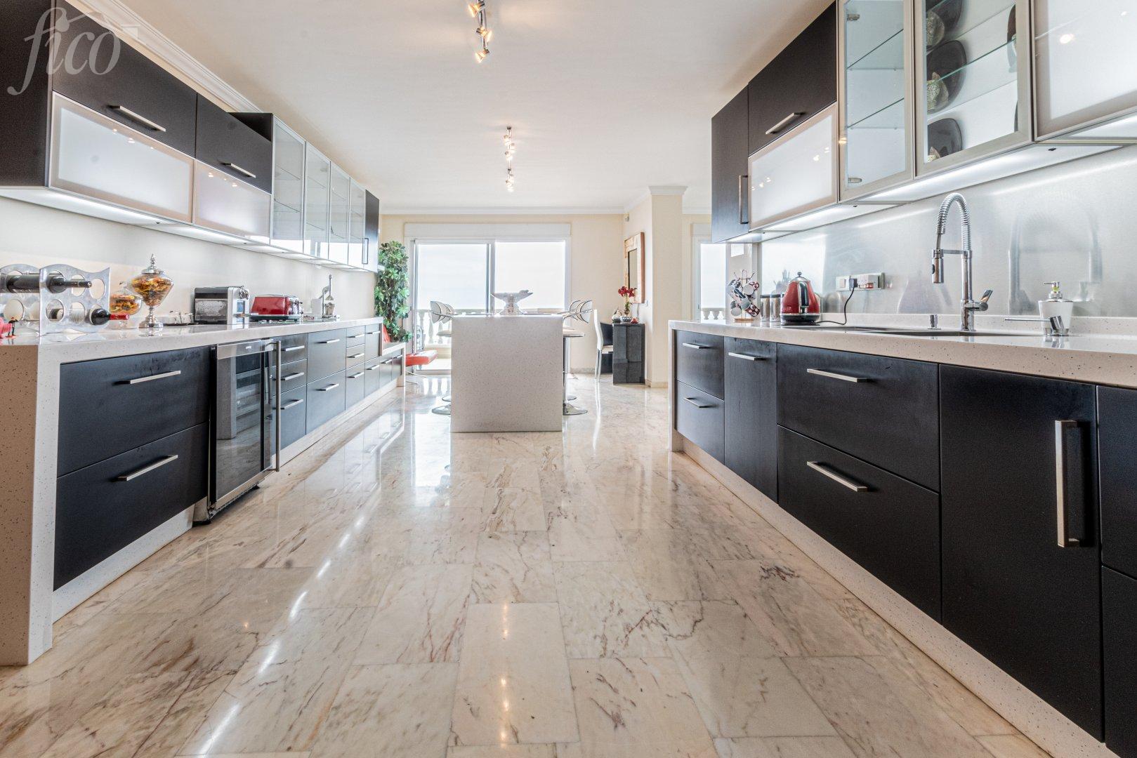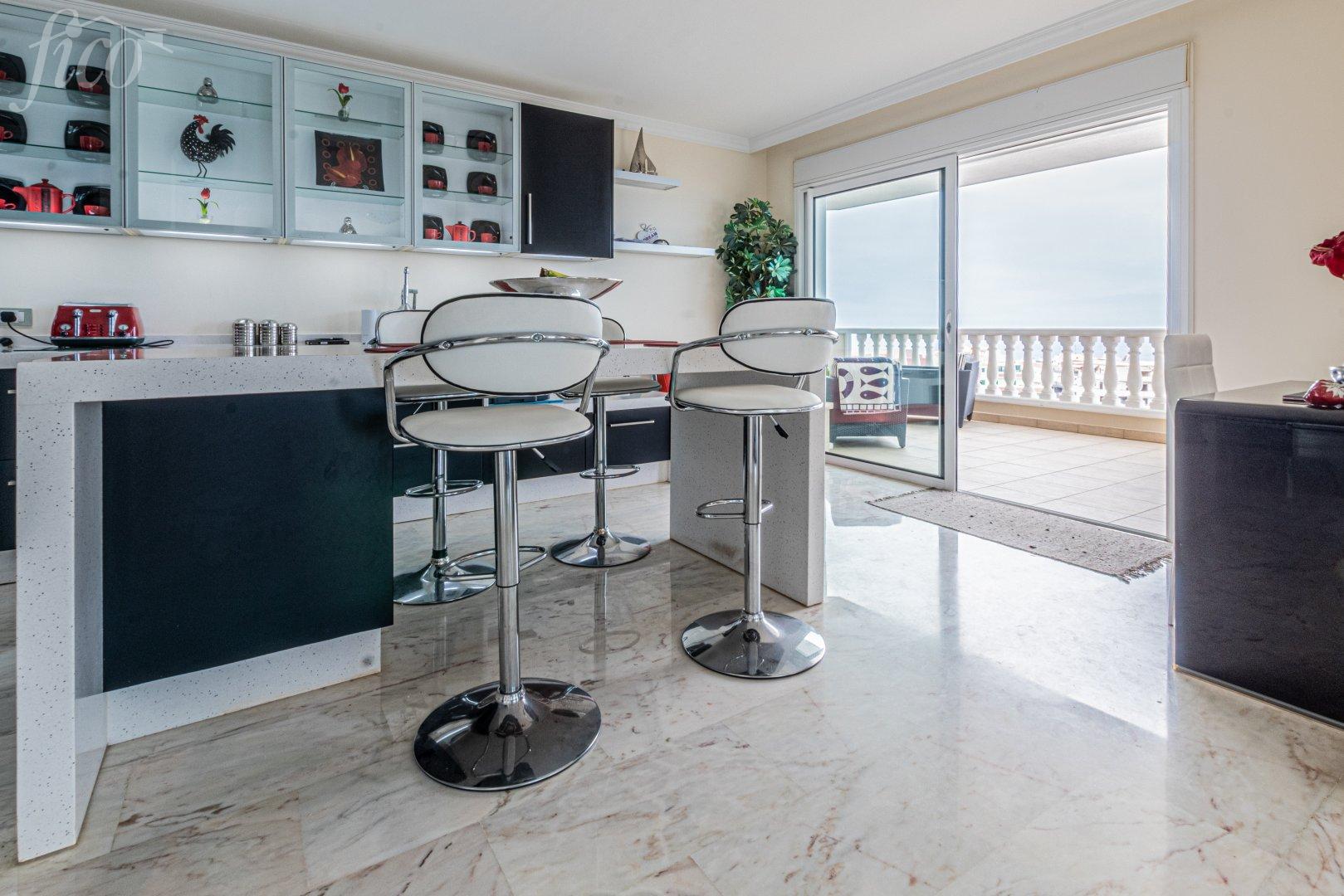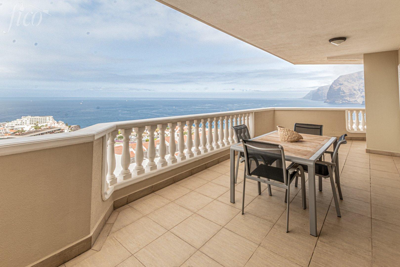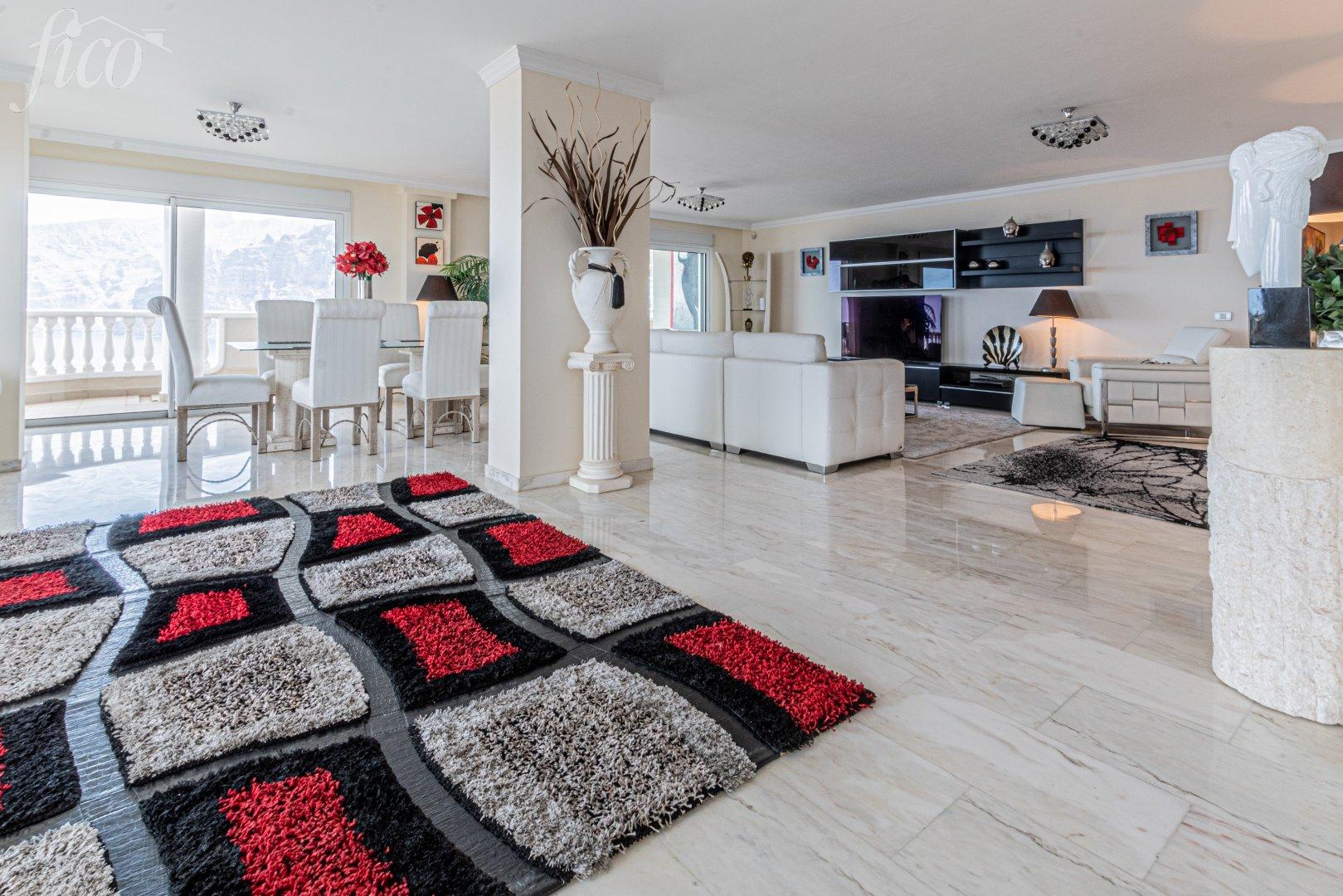 Fantastický luxusní apartmán se 4 ložnicemi ve velmi oblíbeném komplexu Gigansol v Puerto de Santiago s nádherným výhledem na oceán. Byt byl rozšířen sloučením 2 dvoupokojových apartmánů. Má tedy 4 ložnice, 4 koupelny, velký otevřený prostor obývajícího pokoje s kuchyňským koutem a 125 m² terasy se 180° výhledem na oceán, útesy Los Gigantes a ostrovy La Gomera a La Palma. Součástí jsou také parkovací stání pro 2 auta a skladný prostor. Komplex Gigansol je velmi dobře udržovaný a zabezpečený. Má také vyhřívaný společný bazén. Jedná se o velmi speciální nemovitost pro ty, kteří oceňují velké otevřené prostory, moderní design a zároveň si chtějí užít fantastický výhled na oceán. V případě potřeby lze byt přestavět zpět a 2 dvoupokojové byty, protože stále má 2 vchody. Část apartmánu pak je možno komerčně vyžívat k pronájmu a druhou mít jako soukromou pro potřeby vlastní, rodiny, či známých. V podstatě kupujete 2 apartmány na privilegovaném místě s nejlepšími výhledy na oceán a celé okolí. Jedná se o velmi zajímavou investici.
