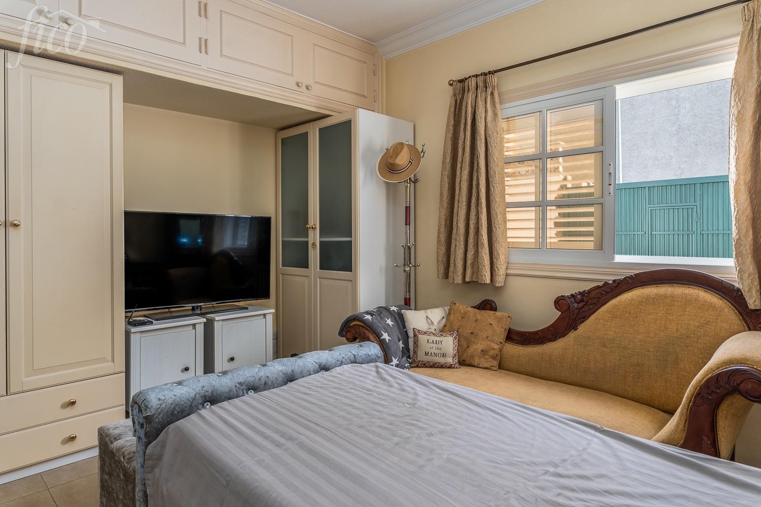 Nádherná vila na druhé linii pláže v Los Cristianos, postavena na pozemku o velikosti 476 m2 obklopeném malou zahradou. Dům má vlastní vchod z ulice, což usnadňuje příjezd autem a parkování před domem. Vila má 2 podlaží, hlavní patro nabízí 3 ložnice, 2 kompletní koupelny, jedna z nich en-suite, velkou samostatnou kuchyň, prostorný a světlý obývací pokoj se dvěma vstupy na velkou terasu s krásným výhledem na moře, kde si můžete užívat slunce po celý den. Hlavní patro je propojeno s podkrovím vnitřním točitým schodištěm, spodní patro poskytuje otevřený prostor, který lze využít jako sklad nebo další jednolůžkový pokoj. Komplex má komunitní bazén a zahradní plochy.