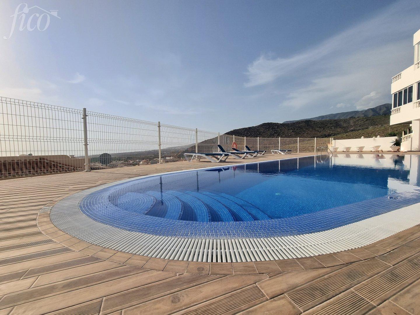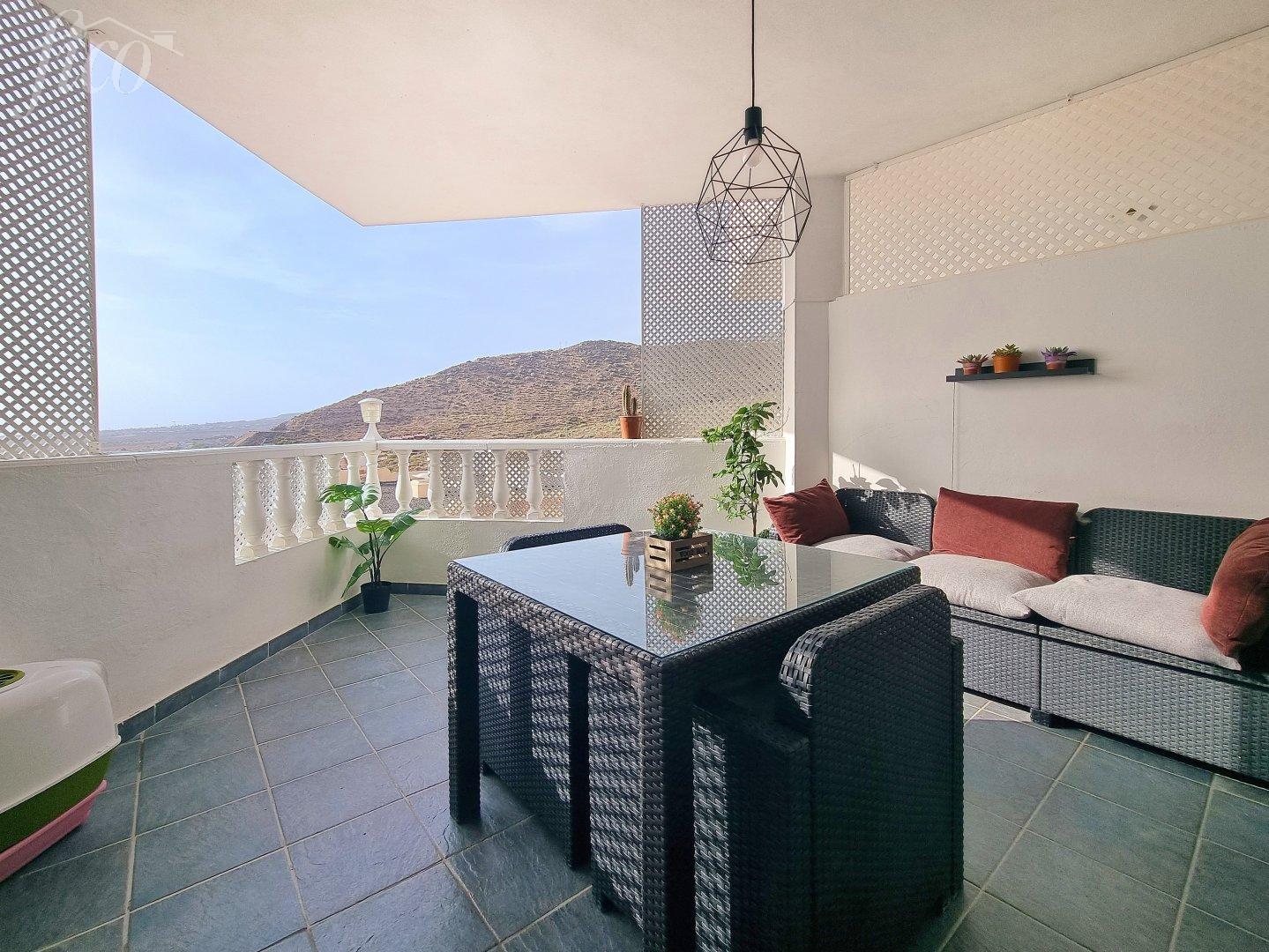 Krásný apartmán v Parque del Conde se 2 ložnicemi, 1 koupelnou, obývacím pokojem s jídelním a kuchyňským koutem, terasa s výhledem na oceán. K bytu náleží parkovací garážové stání, bazén.