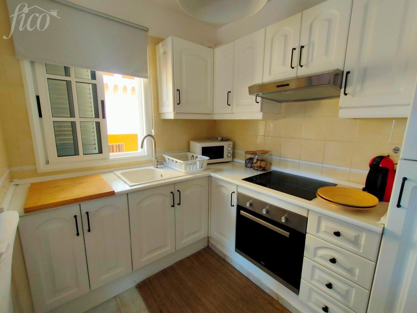 Pěkný apartmán v oblasti Torviscas, v Costa Adeje. Celková plocha 77 m². Vnitřní prostor 54 m² a terasa 23 m² s nádherným výhledem na hory a moře. Má vybavenou ložnici s vestavěnou skříní. Koupelna je vybavená sprchovým koutem, bidetem a oknem. Dále plně zařízenou a vybavenou otevřenou kuchyni otevřenou do obývacího pokoje, který je propojený s terasou kde se můžete kochat se krásným výhledem. Apartmán je plně zařízený, připravený k nastěhování. Apartmán lze turisticky pronajímat má licenci VV. Apartmán se nachází v rezidenční čtvrti Balcón del Atlántico je velmi klidná rezidenční oblast s výtahem, dvěma komunitními bazény, zahradními plochami a kamerovým systémem. Nachází se v blízkosti několika zajímavých míst a služeb, jako je škola Costa Adeje, spojení s dálnicí TF-1, pláže Fañabé a Torviscas, nákupní centrum X-Sur vzdálené 1 km nebo vodní park Aqualand vzdálený 1,8 km. Nejbližší letiště je letiště Tenerife South, 20 km daleko. V době Vaši nepřítomnost Vám v rámci našich služeb rádi zajistíme správu a údržbu bytu včetně úklidu.