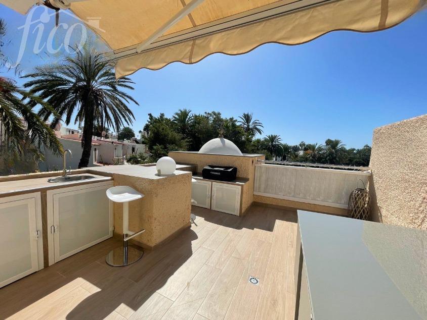 Prostorný byt s panoramatickým výhledem na moře, situovaný v jedné z nejprestižnějších částí Las Américas, jen 5 minut od Monkey Beach, Playa Troya a Fañabé. Tento kompletně zrekonstruovaný byt nabízí moderní a světlý design. Hned po vstupu vás přivítá prostorný obývací pokoj, který je propojený s otevřenou kuchyní, vybavenou novými spotřebiči a zařízeným s důrazem na styl. Na prostorné terase s markýzou najdete venkovní nábytek a užijete si výhled na moře. V horním patře se nachází ložnice s velkorysými vestavěnými skříněmi a moderní koupelnou se sprchou, osvětlenou oknem, které prostor naplňuje světlem. Na druhém patře se nachází rozsáhlá střešní terasa s lehátky a panoramatickým výhledem na moře, což je ideální místo pro vychutnání si výjimečného klimatu oblasti. Komplex nabízí bazén a pečlivě udržované společné zahrady, které poskytují relaxační a exkluzivní prostředí. Nepropásněte příležitost žít v tomto zrekonstruovaném byte, navrženém pro maximální užívání života na výjimečném místě. Rekreační pronájem (VV) je povolen. V případě zájmu se Vám postaráme o pronájem, správu a údržbu nemovitosti v době Vaší nepřítomnosti.