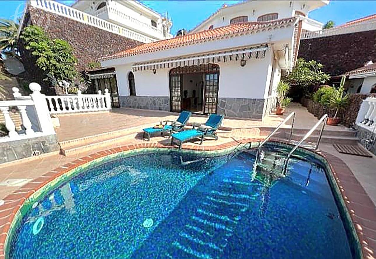 Představujeme vám exkluzivní samostatně stojící vilu v prestižní lokalitě San Eugenio Alto, která splní všechny vaše sny o bydlení na Tenerife. Prostorný interiér navržený s důrazem na detail. Horní patro nabízí 4 luxusní ložnice, každou s vlastní en-suite koupelnou. Hlavní ložnice vás ohromí šatnou a velkou soukromou terasou, kde si můžete vychutnat chvíle klidu. Všechny pokoje jsou vybaveny praktickými vestavěnými skříněmi. Na hlavním patře vás uvítá světlý obývací pokoj s panoramatickými výhledy, propojený s moderní kuchyní s centrálním ostrůvkem a jídelním koutem. Exteriér této vily je oázou klidu a pohody. Vyhřívaný bazén, slunná terasa a venkovní jídelní kout vám umožní naplno si užít nádherné klima ostrova. V suterénu najdete garáž pro 2 auta, další ložnici a koupelnu. Tento prostor lze přizpůsobit vašim představám – vytvořte si domácí kino, posilovnu, vinný sklípek nebo další pokoje. Nezapomenutelné výhledy a prestižní lokalita. Z této vily se vám naskytnou úchvatné výhledy na moře, Costa Adeje a ostrov La Gomera, které vás okouzlí svou jedinečnou krásou. San Eugenio Alto je jednou z nejvyhledávanějších lokalit Tenerife, která nabízí klid, bezpečí a snadný přístup ke špičkovým službám, restauracím, butikům i proslulým plážím. Ideální pro rodiny i investory. Tato nemovitost je perfektní volbou pro ty, kteří hledají luxusní bydlení nebo výnosnou investici s vysokým potenciálem zisku. Rádi se Vám postaráme o pronájem, správu a údržbu Vašeho apartmánu v době Vaší nepřítomnosti.