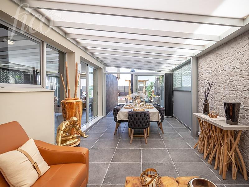 Celková plocha 190 m², terasy 160 m², 3 ložnice, 4 koupelny, 2 podlaží, rok výstavby 2005.