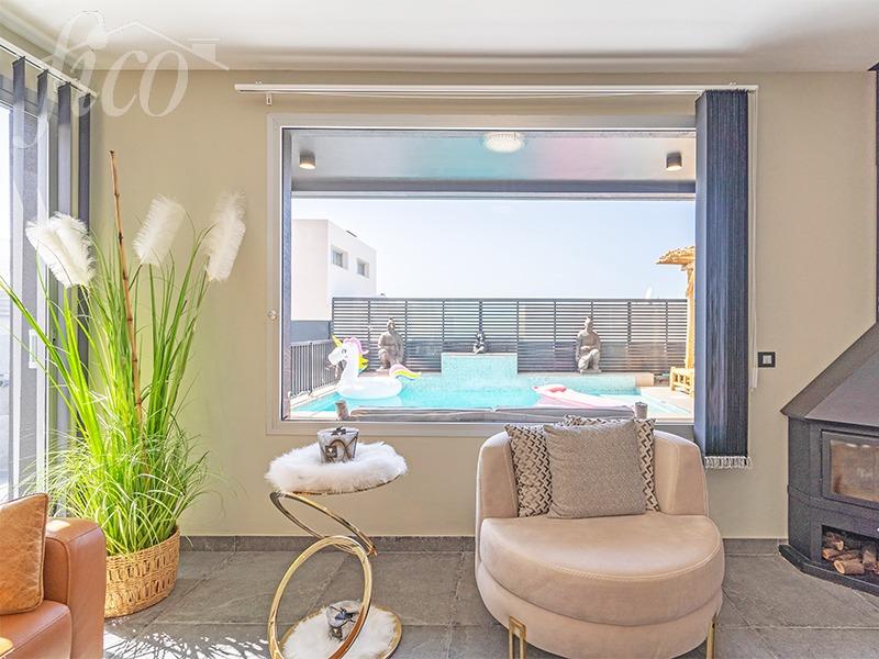 Tato luxusní vila nabízí kombinaci moderního designu, elegance a komfortu. Nachází se v klidné a prestižní lokalitě Chayofa, ideální pro exkluzivní životní styl. V přízemí najdete prostorný obývací pokoj s krbem, který přechází do americké kuchyně. Zde vás čeká krásná zimní zahrada, ideální pro relaxaci, nebo společenské chvíle s rodinou a přáteli. K dispozici je také toaleta pro hosty a velká terasa s privátním bazénem a grilovací zónou. Nechybí ani garáž, která vám poskytne pohodlí a bezpečí pro vaše vozidlo. Pokud vystoupíte do prvního patra, najdete zde tři ložnice, každou s vlastní koupelnou a vestavěnými skříněmi. Dvě terasy vám nabídnou panoramatické výhledy na moře, ostrov La Gomera a okolní hory. A samozřejmě, střešní terasa s jacuzzi je tím pravým místem pro odpočinek a relaxaci, kde si užijete dechberoucí výhledy. Chayofa je klidná, ale zároveň strategicky umístěná lokalita. K dispozici máte vše, co potřebujete: zdravotní středisko, nemocnici El Mojón a přitom je to jen kousek od známých turistických center Los Cristianos, Playa de las Américas a Costa Adeje. Neváhejte – kontaktujte nás ještě dnes a domluvte si prohlídku! Začněte nový život v luxusní nemovitosti, která vám poskytne vše, co potřebujete k pohodlnému a stylovému bydlení. Rádi se Vám postaráme o pronájem, správu a údržbu Vašeho apartmánu v době Vaší nepřítomnosti.