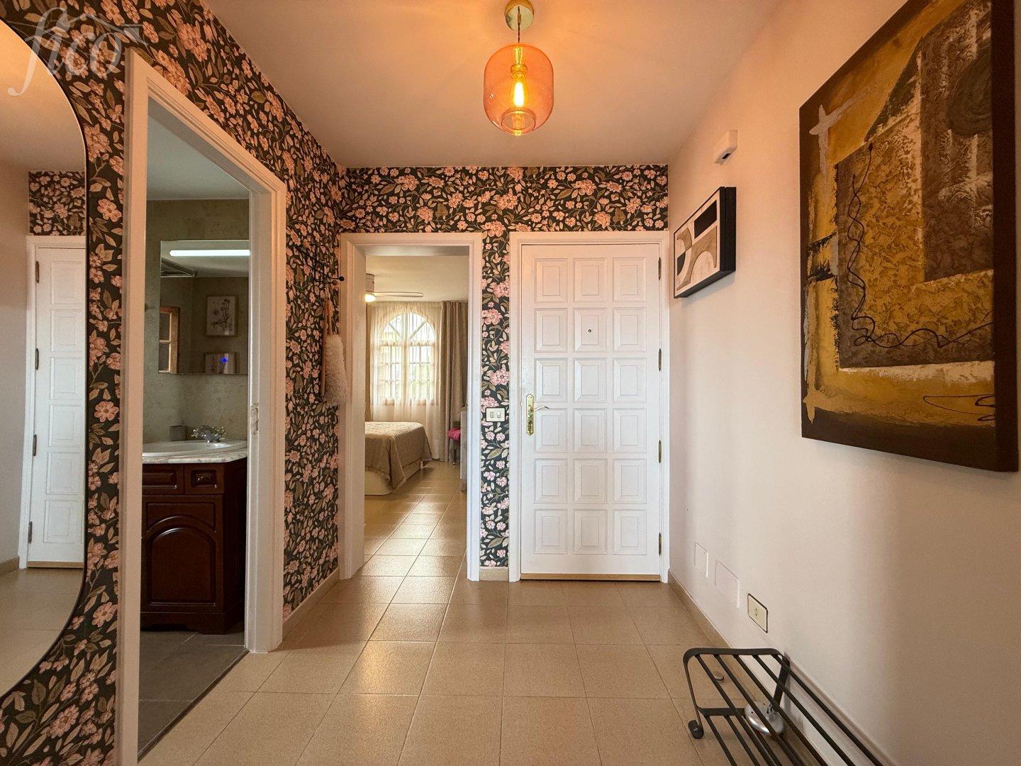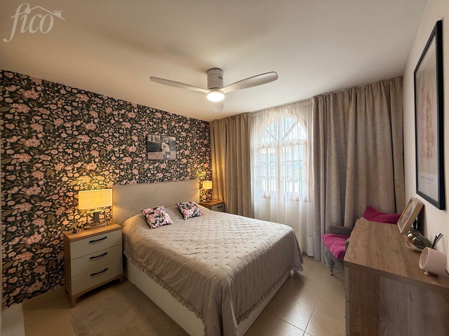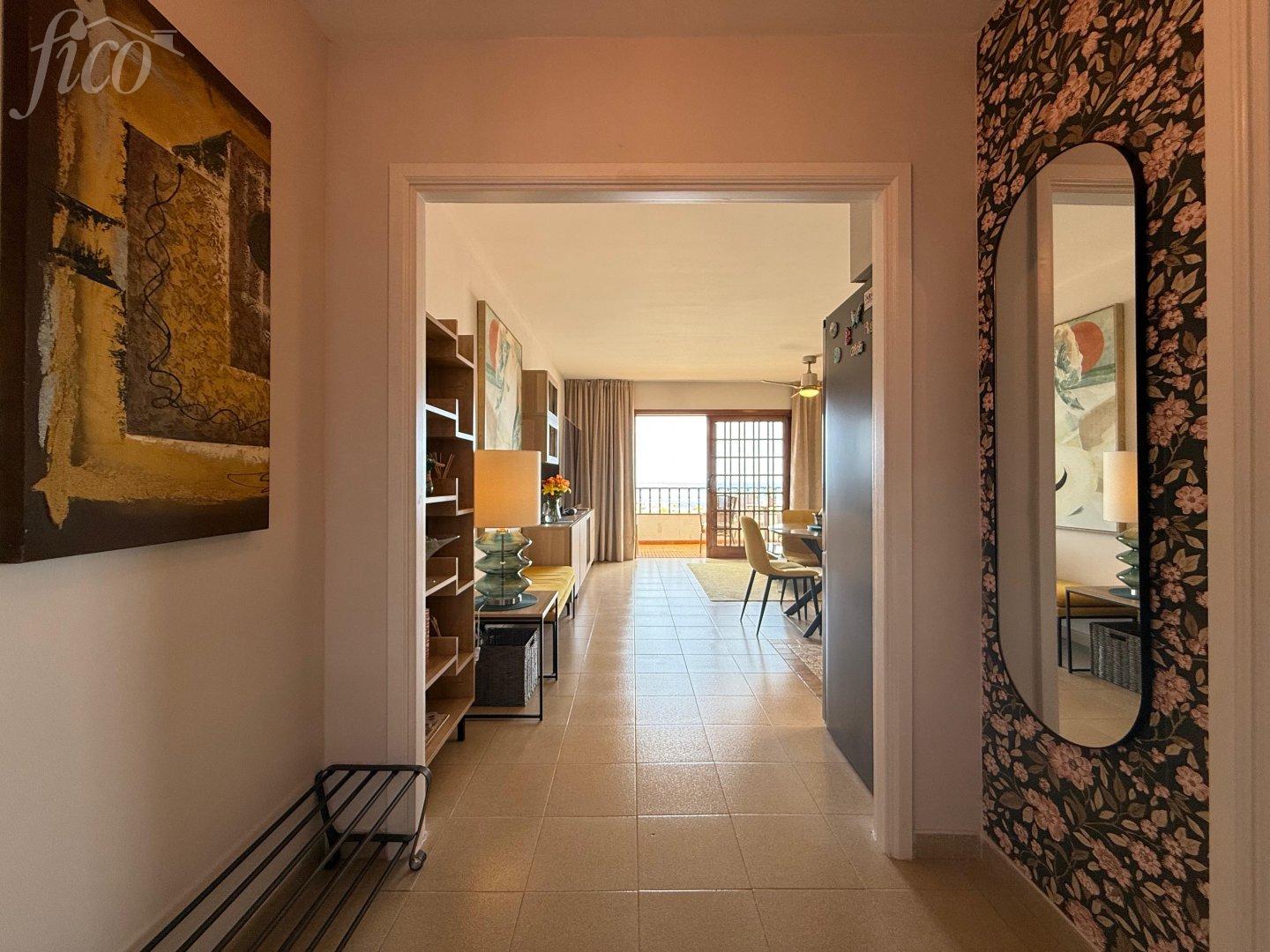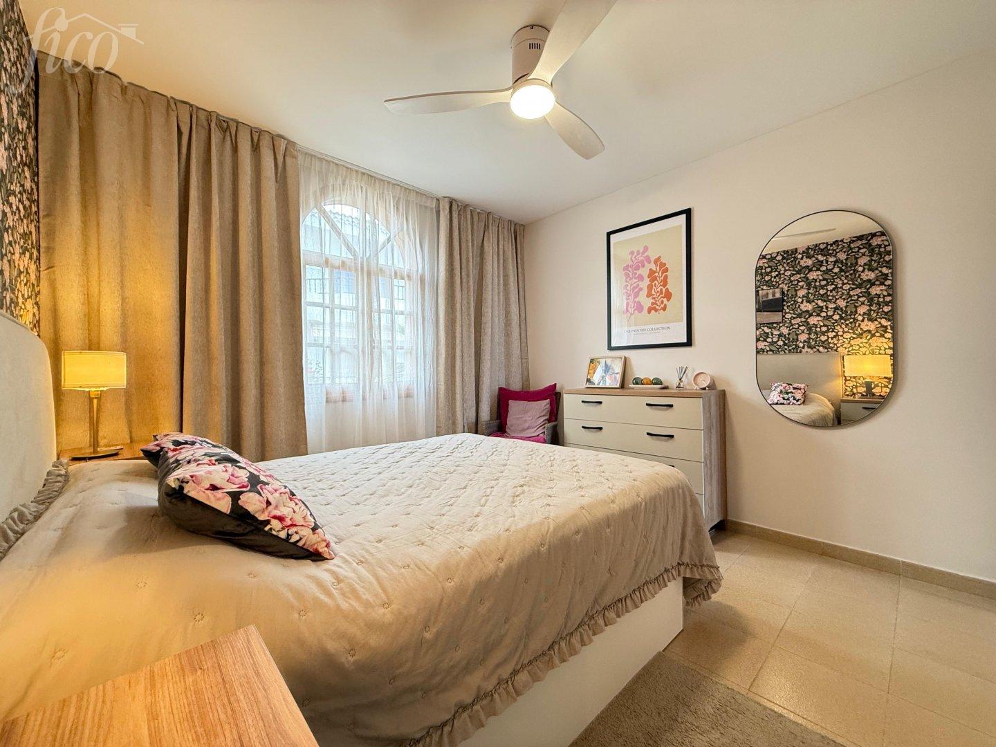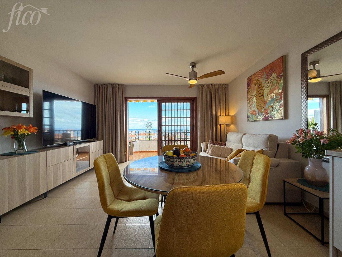 Moderní jednopokojový apartmán situovaný v prvním patře klidného a udržovaného rezidenčního komplexu v oblasti San Eugenio Alto, Costa Adeje. Tento světlý byt o rozloze 53 m² je ideální jak pro vlastní bydlení, tak i jako investice s možností krátkodobého pronájmu (licence VV je povolena). Dispozice zahrnuje prostorný obývací pokoj s otevřenou plně vybavenou kuchyní, světlou ložnici a moderní koupelnu. Nemovitost byla kompletně zrekonstruována v roce 2023 a prodává se plně zařízená a připravená k nastěhování. Z vlastní terasy se nabízí krásný výhled na oceán a hory. Komplex nabízí komunitní bazén, zelené plochy a bezpečné prostředí s nízkými měsíčními poplatky (70 €/měsíc). Možnost pronájmu garážového stání za 80 €/měsíc. Výborná poloha – v blízkosti obchodního centra X-Sur, termálních lázní Aqua Club, restaurací, supermarketů a dalších služeb.