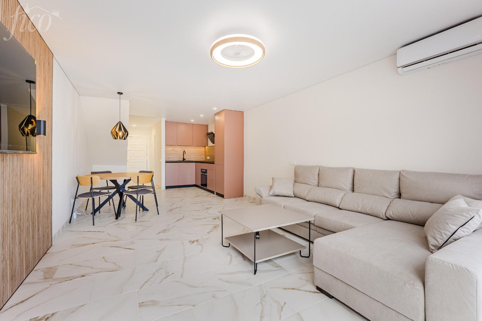 Moderně a kvalitně zrekonstruovaný mezonetový apartmán se nachází v oblíbeném komplexu Amarilla Bay, v klidné a slunné oblasti Costa del Silencio, jen pár kroků od oceánu. S celkovou plochou 91 m² a dvěma terasami nabízí pohodlné bydlení i skvělou investiční příležitost s možností získání licence na krátkodobý pronájem (VV). Dispozice je rozdělena do dvou pater. V prvním patře se nachází prostorný obývací pokoj s jídelní částí a vstupem na slunnou terasu o rozloze 7,5 m², moderní kuchyně vybavená všemi spotřebiči a koupelna se sprchovým koutem. Ve druhém patře jsou dvě ložnice s vestavěnými skříněmi – každá má vlastní přístup na terasu (7,5 m² a 5 m²) s bočním výhledem na moře, a dále druhá koupelna. Apartmán je kompletně vybaven novým nábytkem a klimatizací, připraven k nastěhování. Komplex je dobře udržovaný a nabízí zelené plochy, komunitní bazén a soukromé parkování s bránou. Veškerá občanská vybavenost, pláž, bary, restaurace, obchody i veřejná doprava jsou v docházkové vzdálenosti do 5 minut. Perfektní volba pro trvalé bydlení nebo investici do turistického pronájmu.