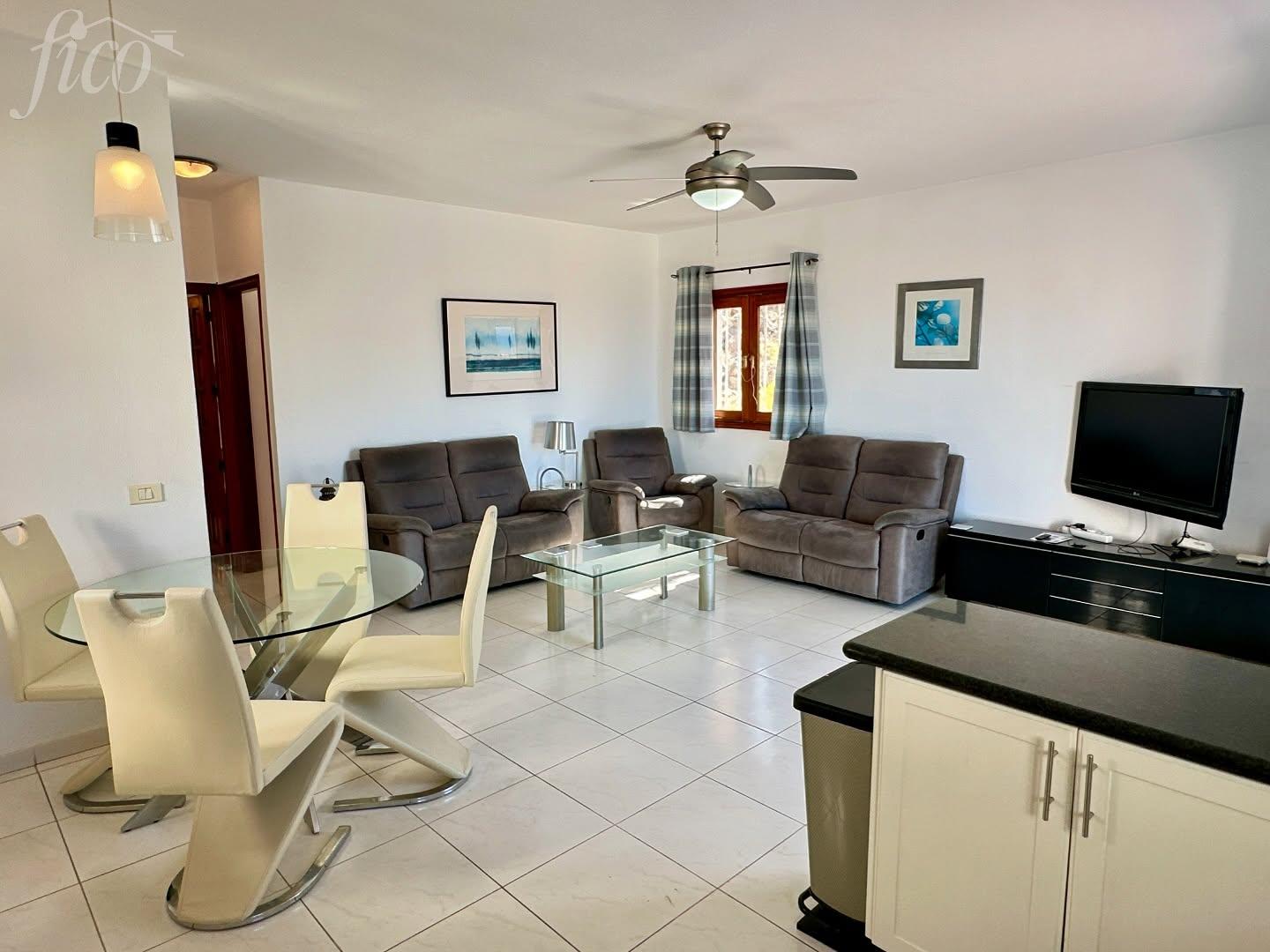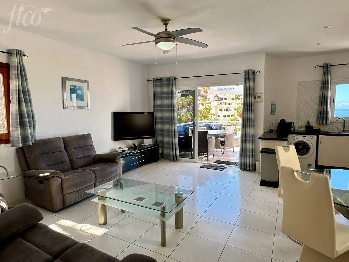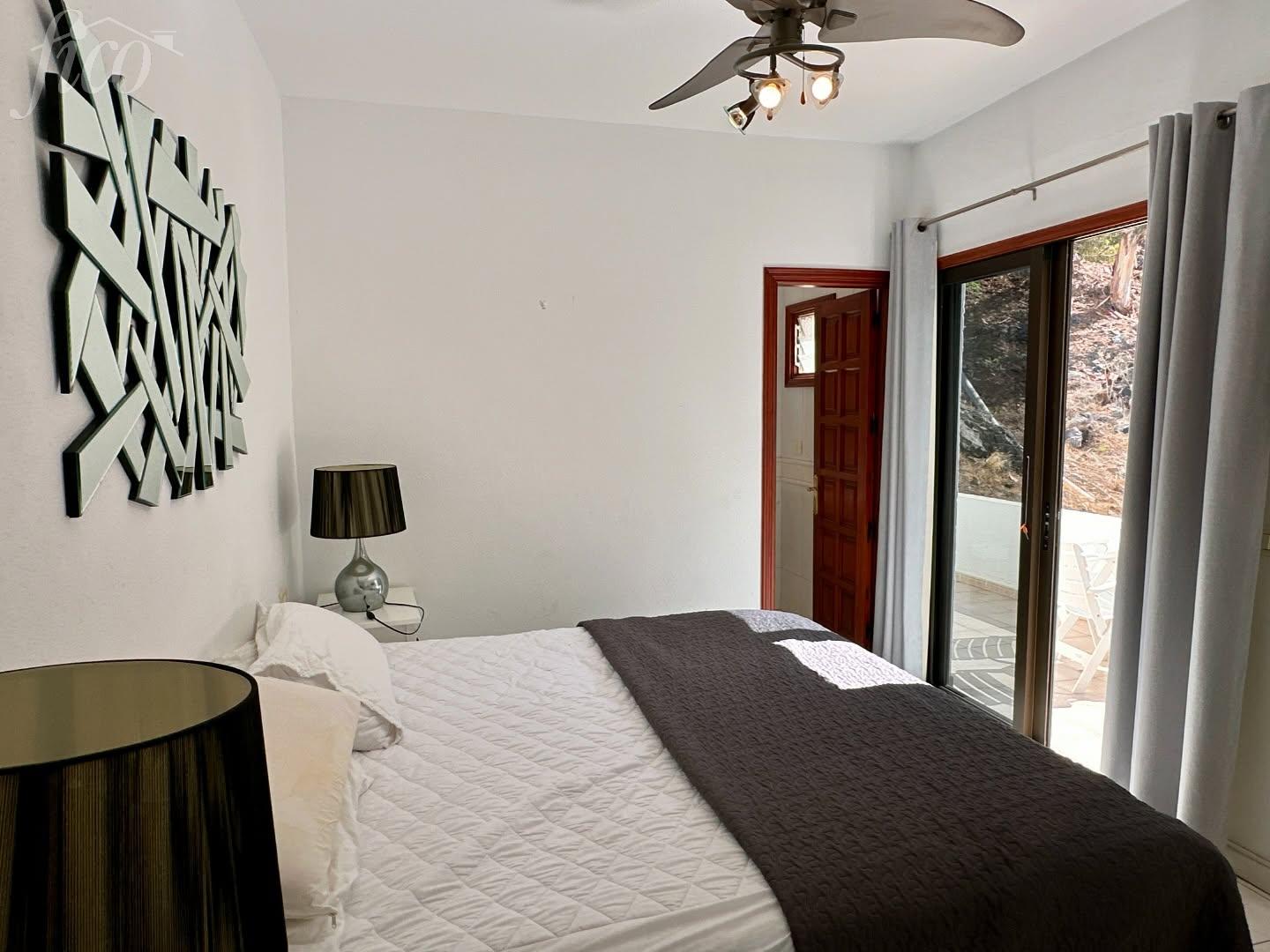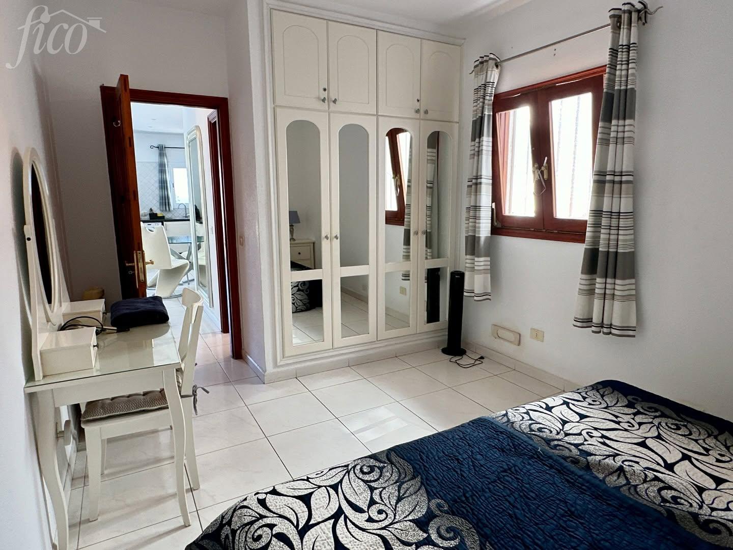 Tento světlý a vzdušný apartmán se nachází ve 3. patře vyhledávaného komplexu Hibisco II v centru oblasti Los Gigantes. Nabízí ideální kombinaci centrální polohy, komfortního bydlení a dechberoucích výhledů na oceán, útesy a pobřeží. Dispozice zahrnuje dvě prostorné ložnice, obě navržené tak, aby poskytovaly maximum denního světla díky dodatečným oknům. Hlavní ložnice disponuje vestavěnými skříněmi, vlastní moderní koupelnou en suite a přímým vstupem na soukromý balkon. Druhá ložnice je rovněž velkorysá a má snadný přístup k druhé koupelně, ideální pro rodinu či hosty. Obývací část s jídelnou je řešena jako otevřený prostor s moderním a uvolněným stylem. Velké prosklené dveře vedou na prostornou terasu a propojují interiér s exteriérem. Kuchyně je plně vybavená, funkční a nabízí dostatek úložného i pracovního prostoru. Dominantou nemovitosti je terasa o velikosti 30 m², která nabízí celodenní slunce a nádherné výhledy na oceán a okolní pobřeží. Je ideálním místem pro ranní kávu, opalování i večerní posezení při západu slunce. Nemovitost se nachází v udržovaném a uzavřeném komplexu, v bezprostřední blízkosti obchodů, restaurací a pobřežních tras. Jedná se o světlý, komfortní a ihned obyvatelný apartmán.