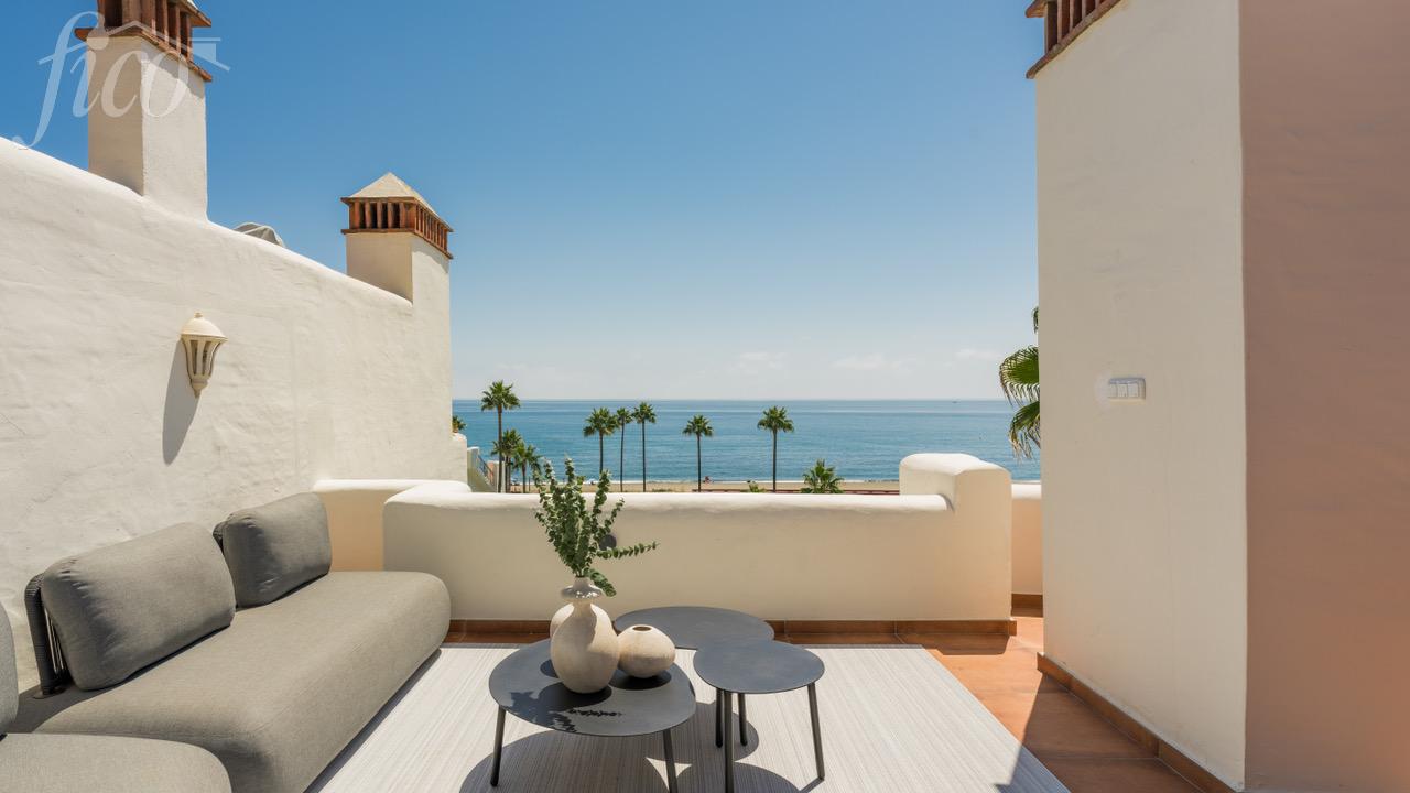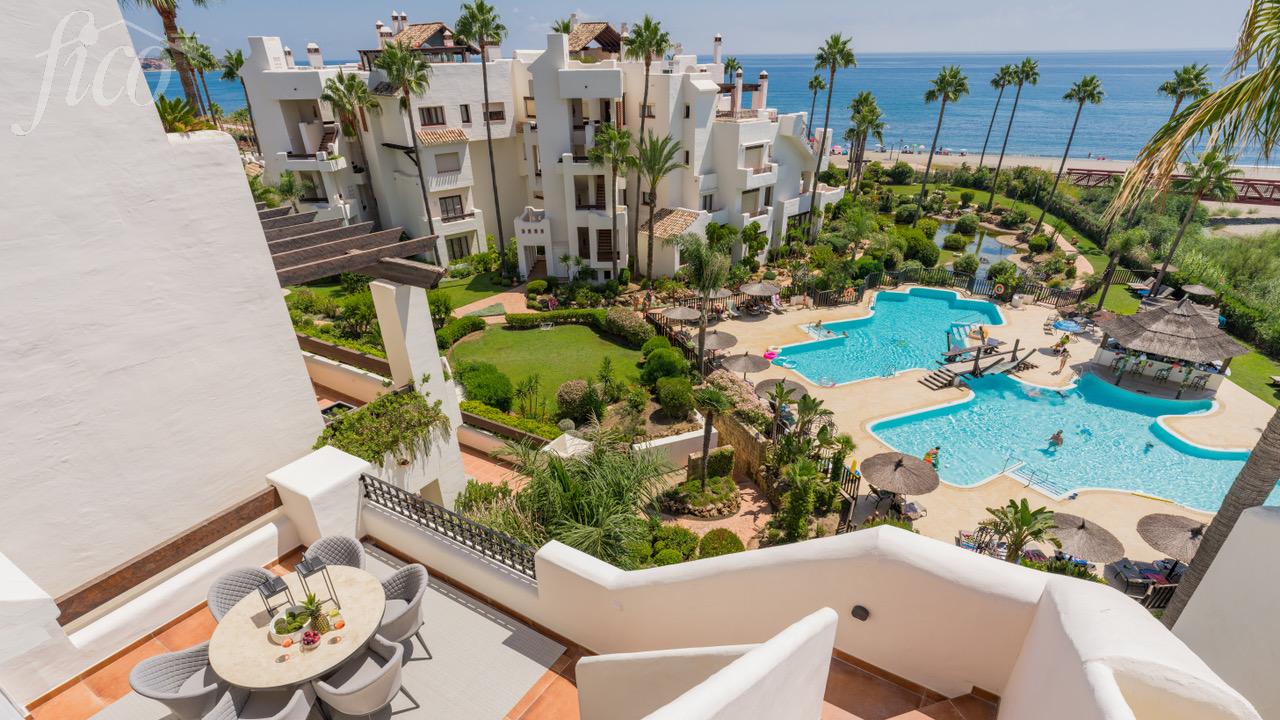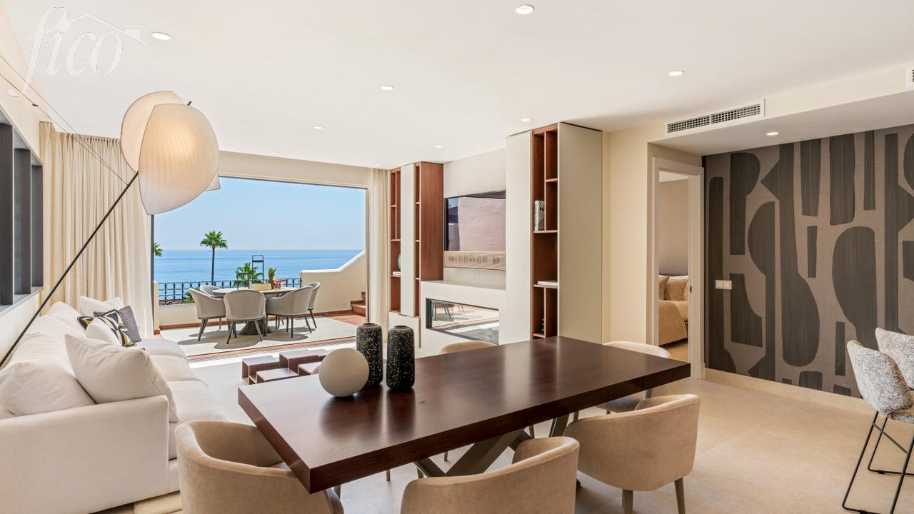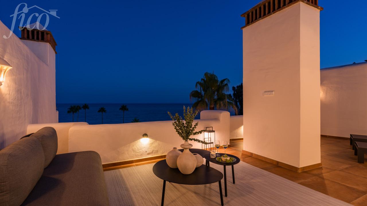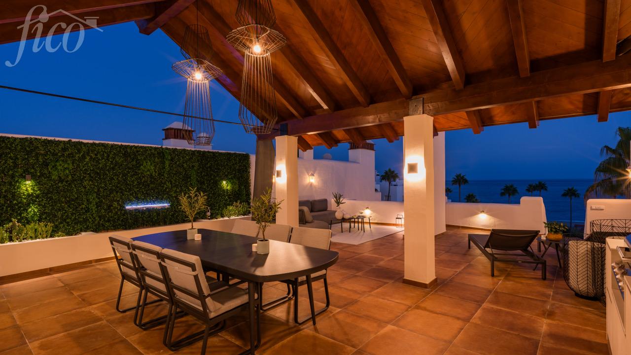 Tento úžasný mezonetový byt se 4 ložnicemi a 3 koupelnami byl kompletně zrekonstruován a jeho otevřený koncept, vytříbený současný design a vysoce kvalitní elektrické spotřebiče z něj činí vzácnou příležitost na místním trhu s nemovitostmi. Všechny pokoje byly pečlivě zařízeny naším interiérovým designérem a obsahují mnoho luxusních detailů, jako jsou šatní skříně na míru, sprchové kouty, volně stojící vana, zvukový systém Bang & Olufsen nebo moderní krb. Impozantní střešní terasa nabízí ničím nerušený výhled na Středozemní moře a je vybavena jídelním, wellness a relaxačním prostorem. Byt se nachází v "Bahía del Velerín", což je luxusní první plážová komunita na jedné z nejkrásnějších pláží mezi Marbellou a Esteponou. Je v docházkové vzdálenosti od několika dobrých restaurací, stejně jako nové Laguna Village a má přímý přístup k nově vybudované pobřežní cestě a moři. Komunita má fantastický bazén se snack barem, tropické zahrady a 24/7 ostrahu. K této úžasné nemovitosti patří podzemní parkoviště a sklad.