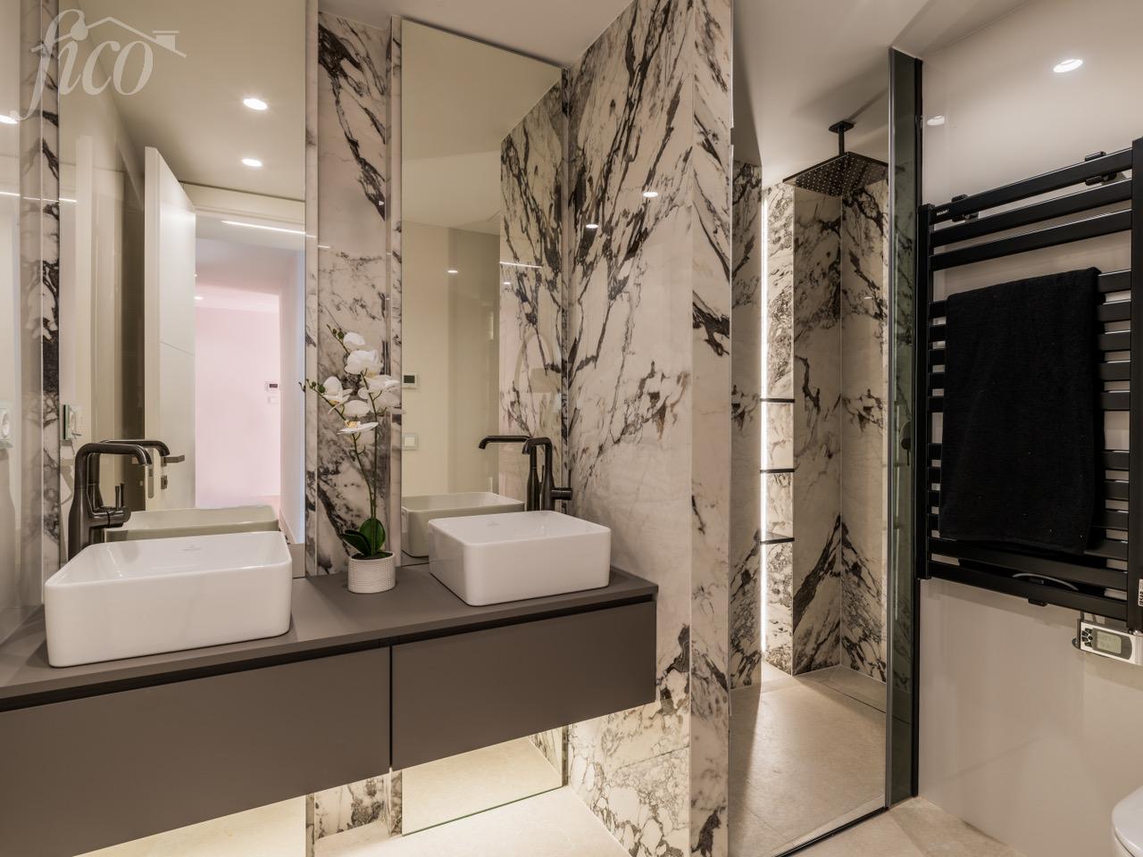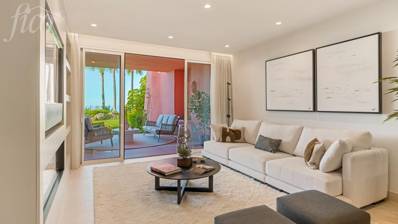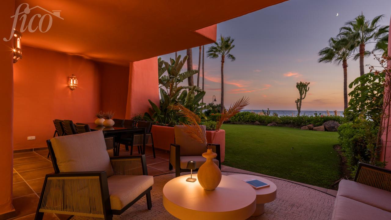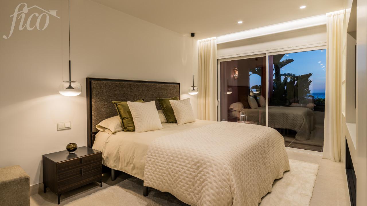 Náš kompletně zrenovovaný apartmán v přízemí se 3 ložnicemi a 2 koupelnami se nachází v jedné z nejkrásnějších první linii na Nové zlaté míli mezi San Pedro a Estepona. Cabo Bermejo je 5hvězdičková plážová uzavřená komunita s 24hodinovou ostrahou, dokonale udržovanými tropickými zahradami, 2 venkovními komunitními bazény s vodopády, umělými jezírky, posilovnou a saunou. Přímo před urbanizací prochází „paseo maritimo“ a v docházkové vzdálenosti je několik krásných restaurací a také 5hvězdičkové hotely „Las Dunas“ nebo „Ikos Resorts“. Byt má zbrusu novou otevřenou kuchyň a startovací prostor, který pečlivě naplánoval náš interiérový designér. Umožňuje vám plně ocenit ničím nerušený výhled na Středozemní moře. Zvukový systém Bang & Olufsen a elektrický krb jsou dvě z mnoha dalších exkluzivních funkcí, které dotvářejí tento úžasný interiér. K bytu náleží podzemní garážové stání a komora.
